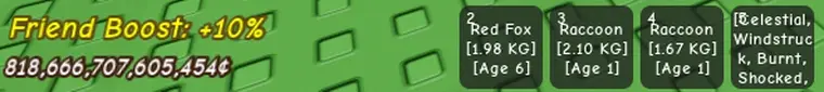 🌱💮 Grow a Garden | 818T 💵 Raccoon (2.10 KG) + Red Fox (1.98 KG) + Raccoon (1.67 KG) + Candy Blossom (774T) | Auto Delivery 🌸📦