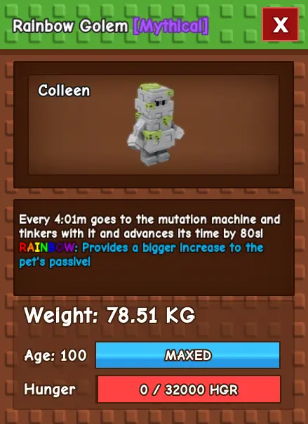 🌶️ +70Kg Rainbow Golem ✅ ROBLOX GROW A GARDEN - GAG 🚀 Cheap - Fast Delivery