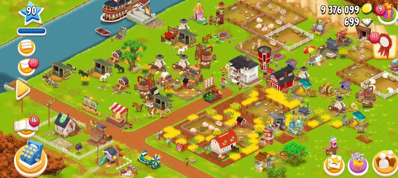 LEVEL 90 | 7500 Barn Storage | Fully Filled With Tools | Main Land Open | 2050 Silo Storage | 9.3M+ Coins & 699 Diamonds | Instant Delivery