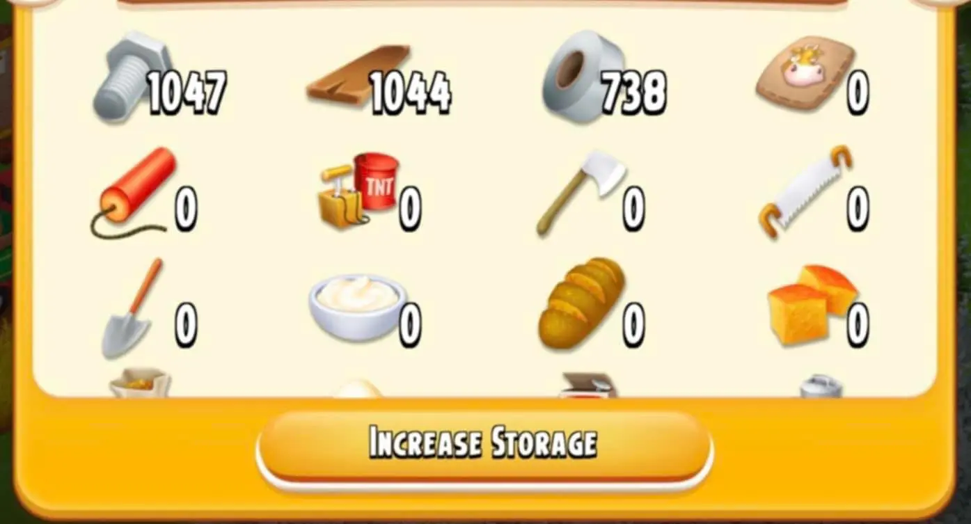 Hayday✨[ Barn expand materials ] ✨Plank-bolt-tape✨ ✨29-30-30✨1 set✨Fastest delivery✨These can be use to upgrade barn storage of your farms✨