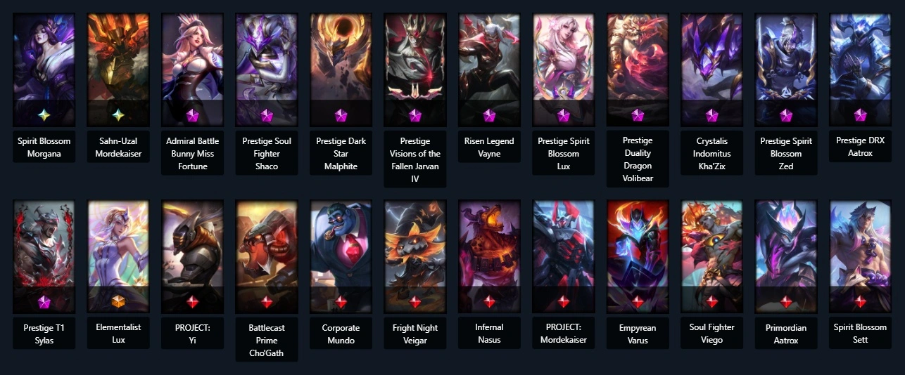 Bronze 1┃93 skins┃81 Champs┃(11 Mythic) Sahn-Uzal Mordekaiser Spirit Blossom Morgana Risen Legend Vayne Prestige Spirit Blossom Lux Prestige T1 Sylas Prestige Duality Dragon Volibear Prestige Spirit Blossom Zed