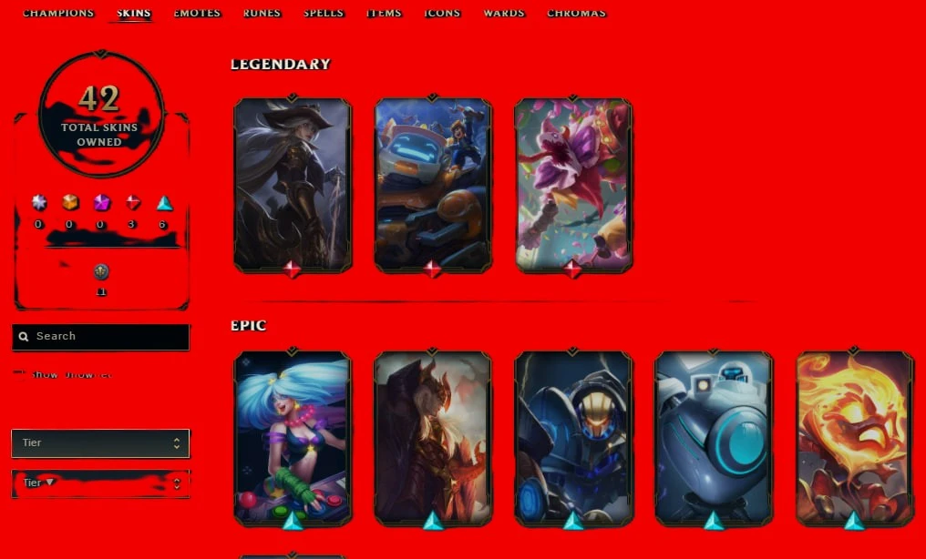 ⭐EUNE ⸱ Unranked .⭐️42 Skins / 0 Chromas  ⸱⚡4 K BE ⸱⚡LEGENDARY  Skin ⸱⚡Best Skins ⸱ 📸Check Photos ⸱ ✅️Mail Changeable⭐