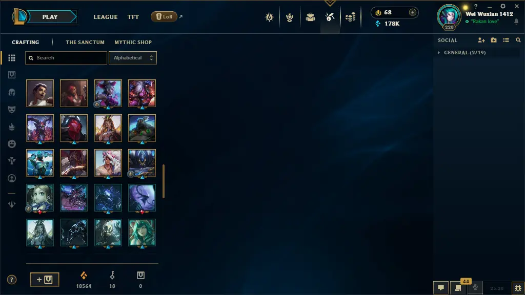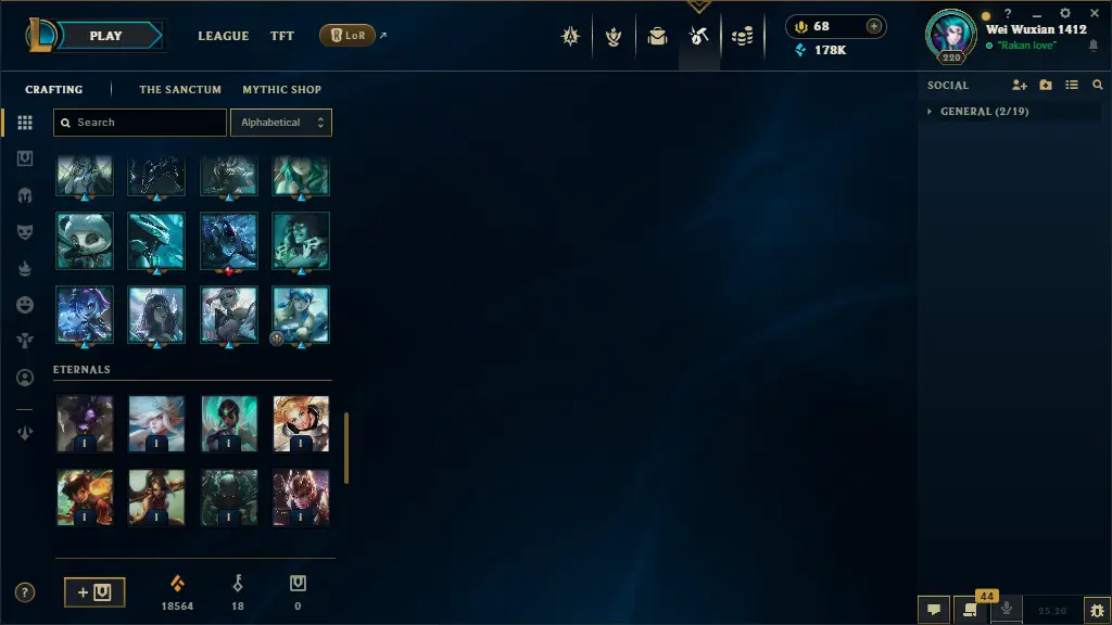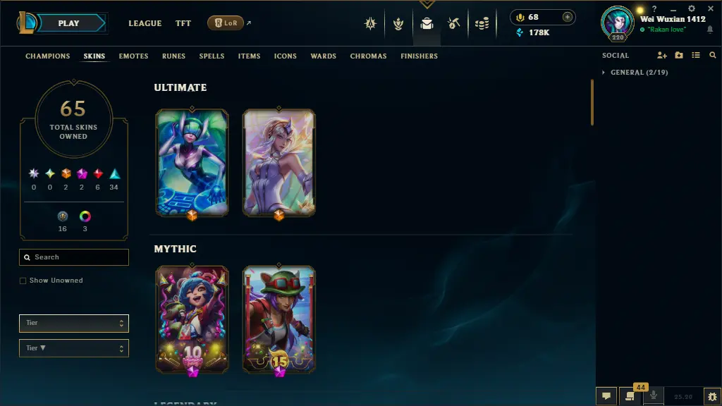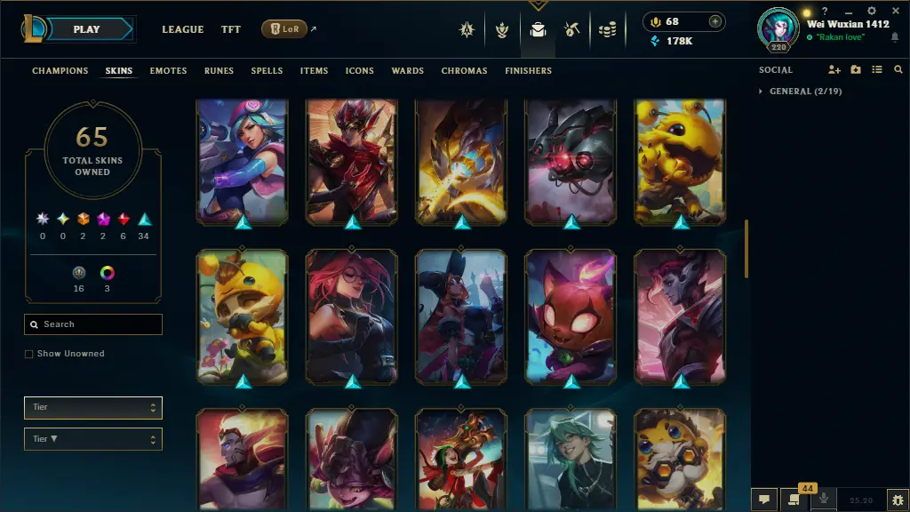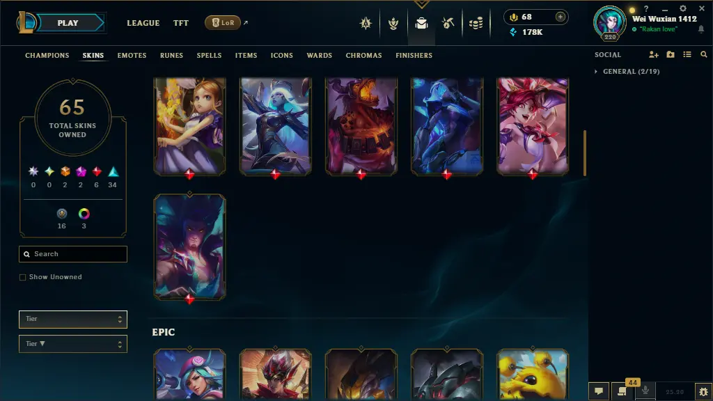euw lv 220 65 skins 65 champs 178K BE +28 SKIN SHARDS