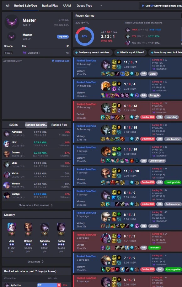 🔥(EUW) MASTER 249 LP (0 LP now) 💎62% WR 📈HAND LEVEL⚡FULL ACCESS