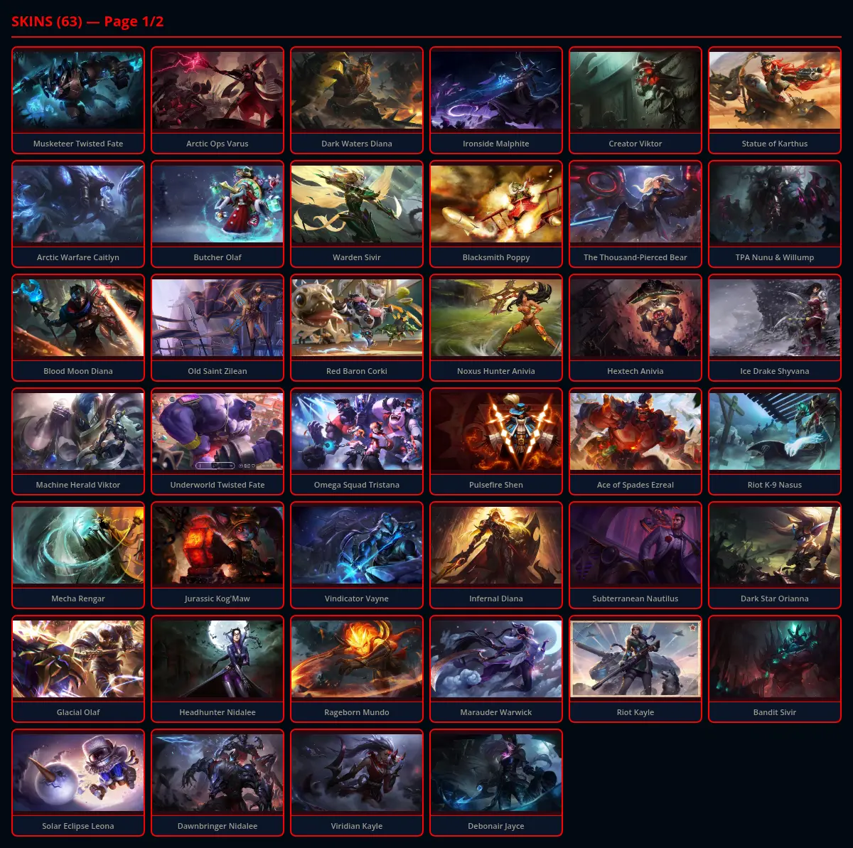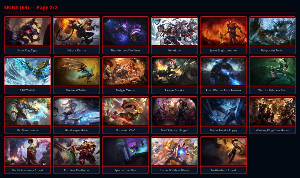 ⚡LA⚡ Unranked 💎 63 Skins 💎 123 Champions 💎 Level 181 💎 3402 BE 💎