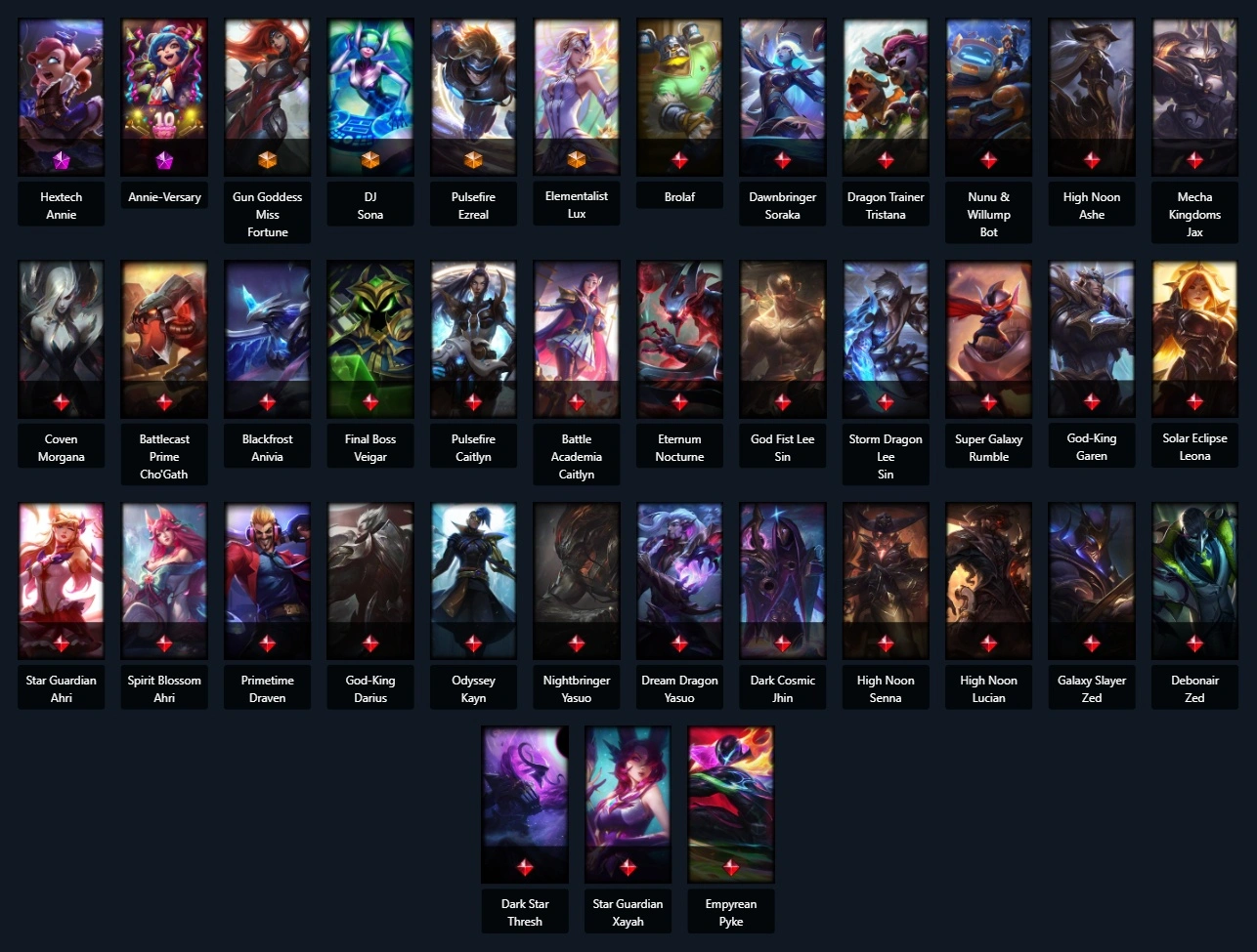 UnRanked┃310 skins┃171 Champs┃(2 Mythic) Hextech Annie Empyrean Pyke Blackfrost Anivia God-King Darius Dark Cosmic Jhin Odyssey Kayn Battle Academia Caitlyn