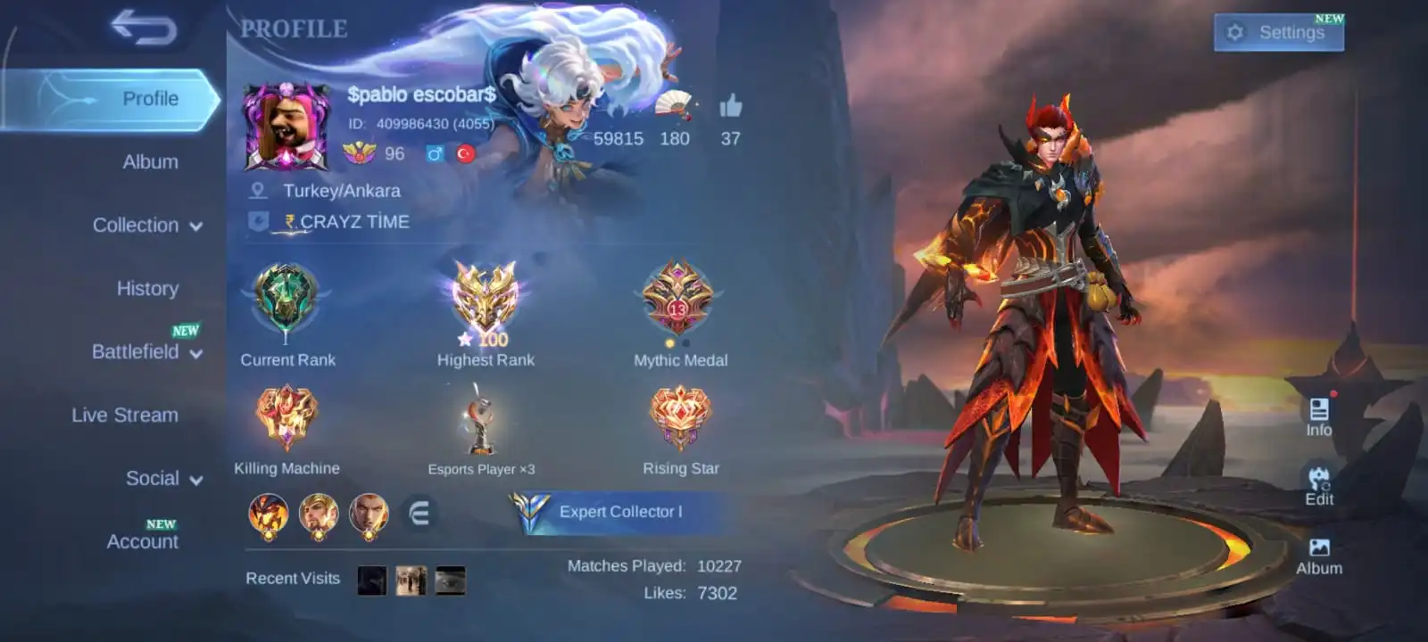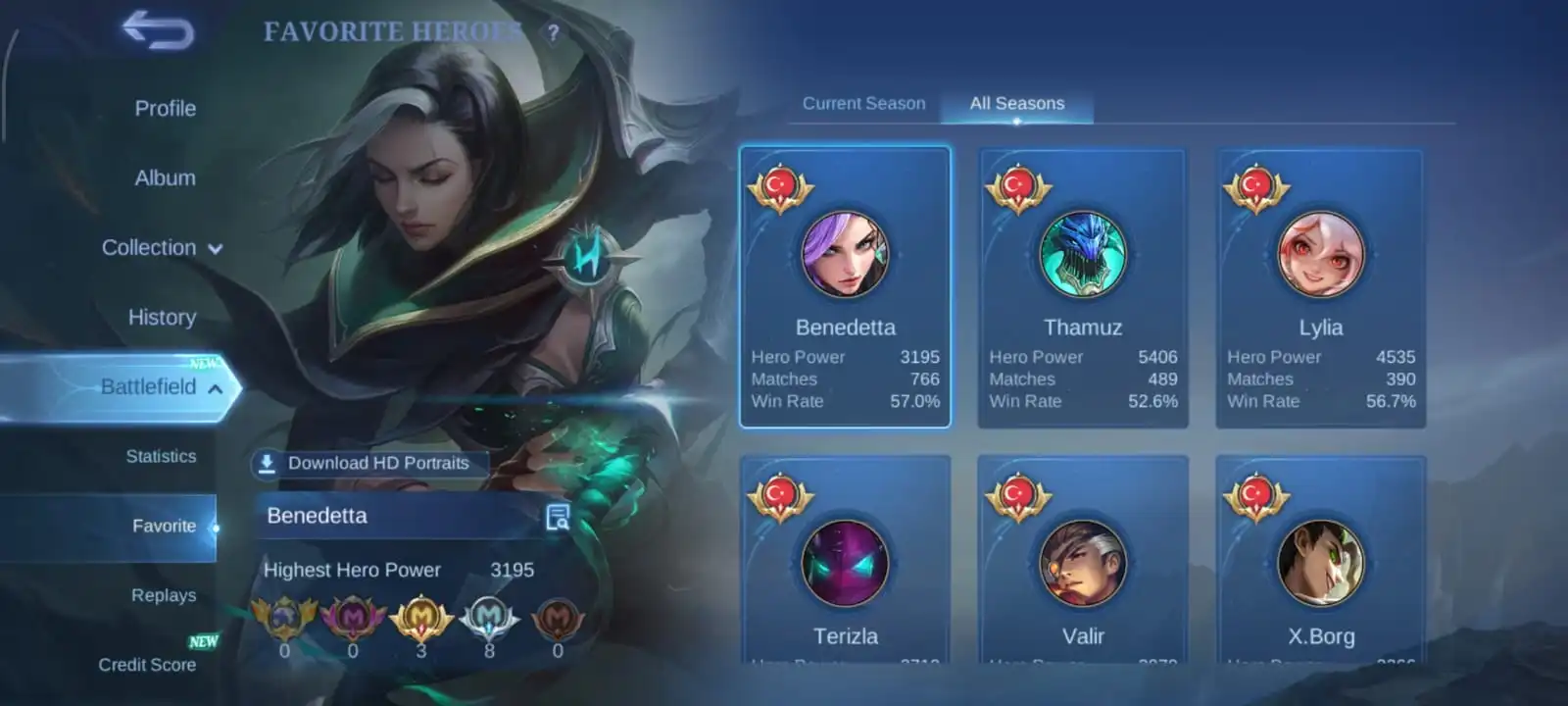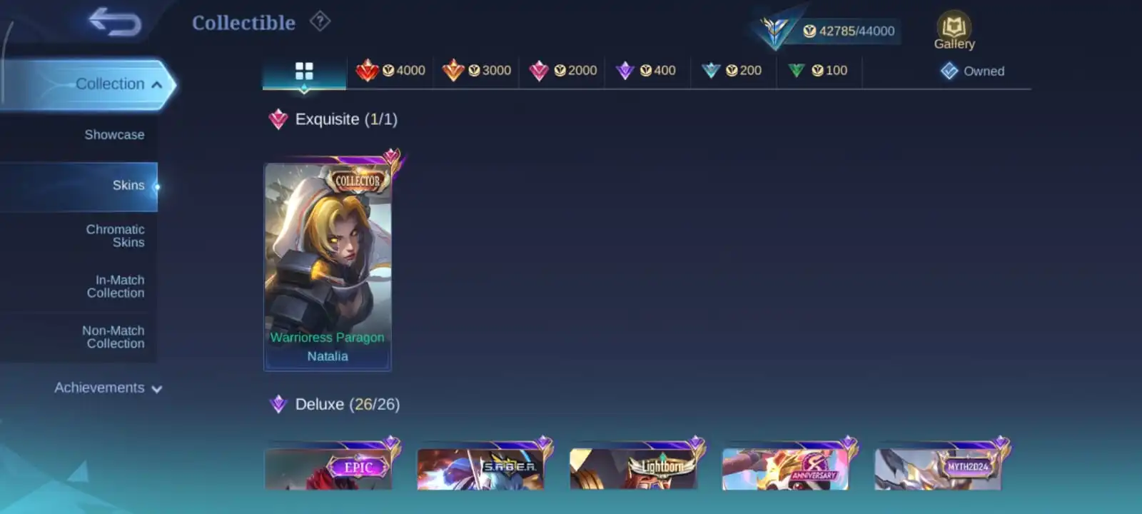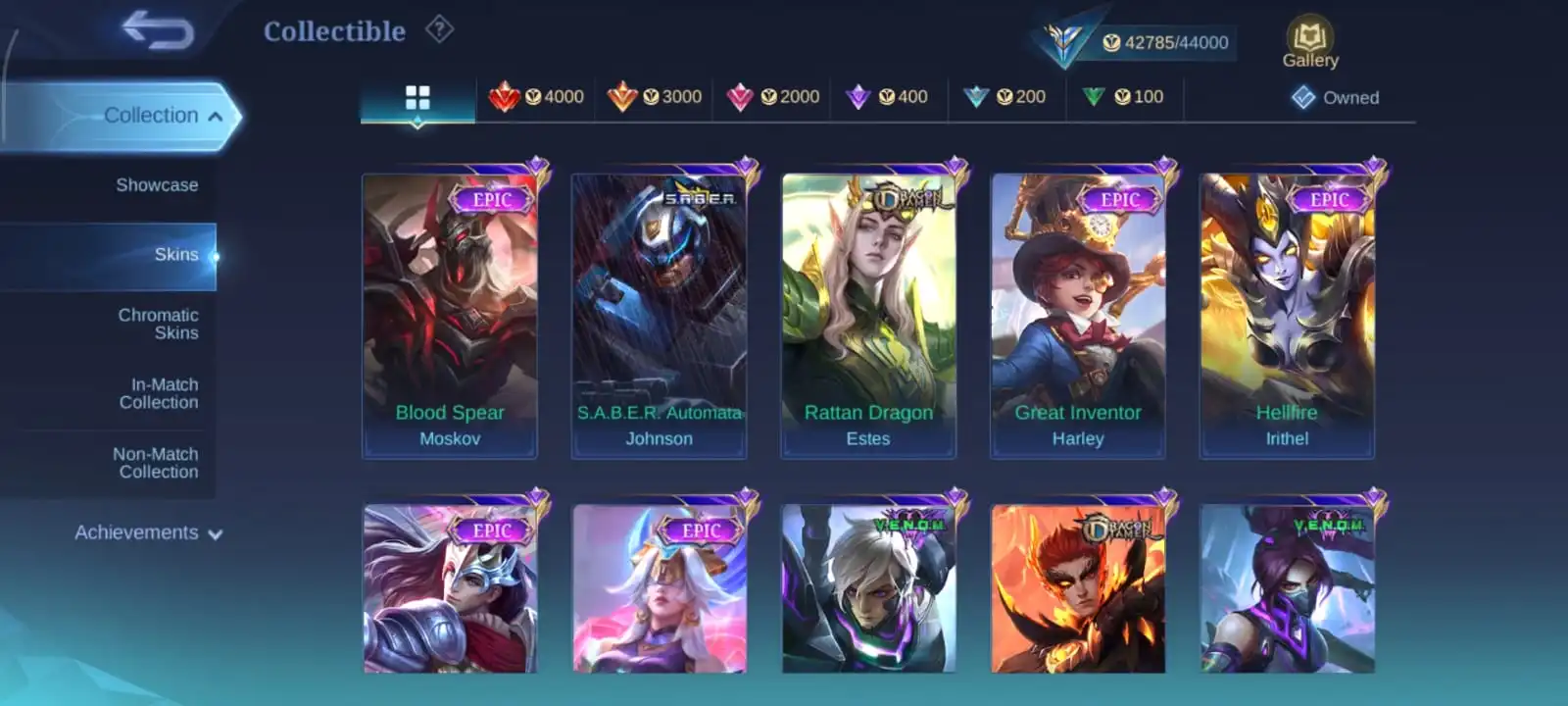 Chapest🔥heroes 132 & skins 209🔥full max emblem🔥collector natalia🔥blazing layla🔥epic Yss🔥valir draconic🔥vale naruto🔥full access account🔥