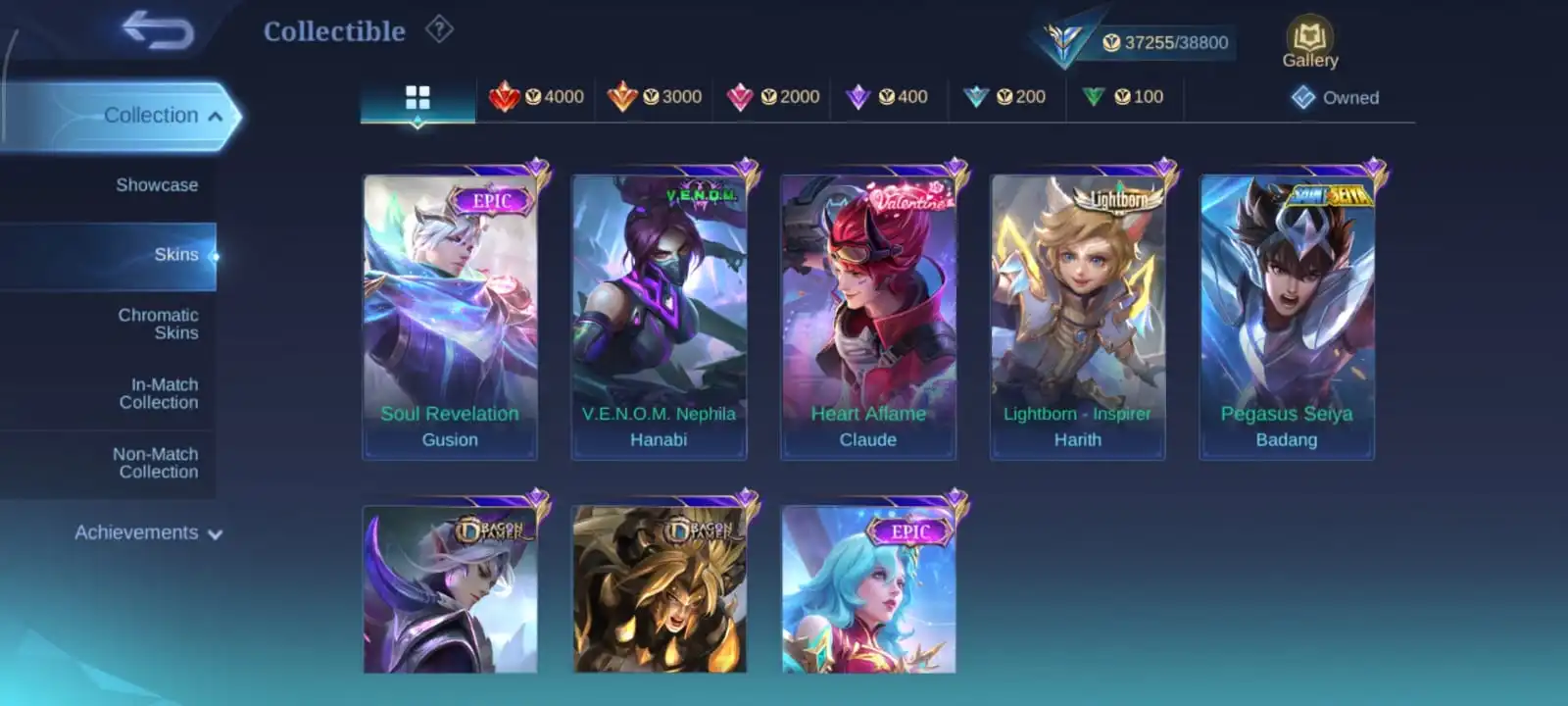 Cheapeat🔥153 skins & 102 hero🔥star hayabusa🔥lucybook roger🔥lightborn harith🔥gusion epic soul🔥full access account🔥