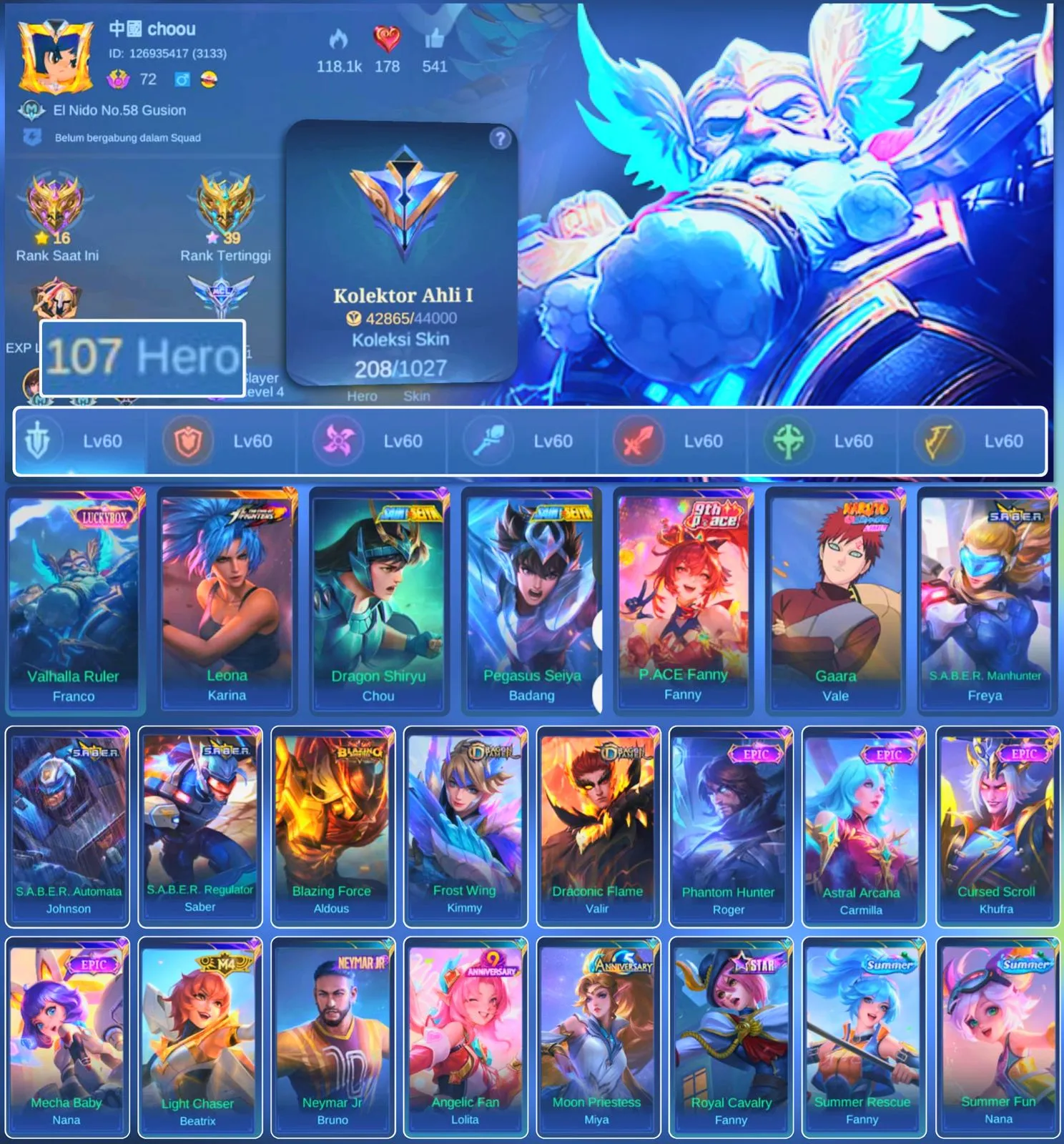 HERO 107 SKIN 208 | EMBLEM ALL MAX | LUCKBOX FRANCO | DRAGON CHOU | KOF KARINA | EPIC ROGER | HERO GOOD | SKIN GOOD | INSTAN DELIVERY