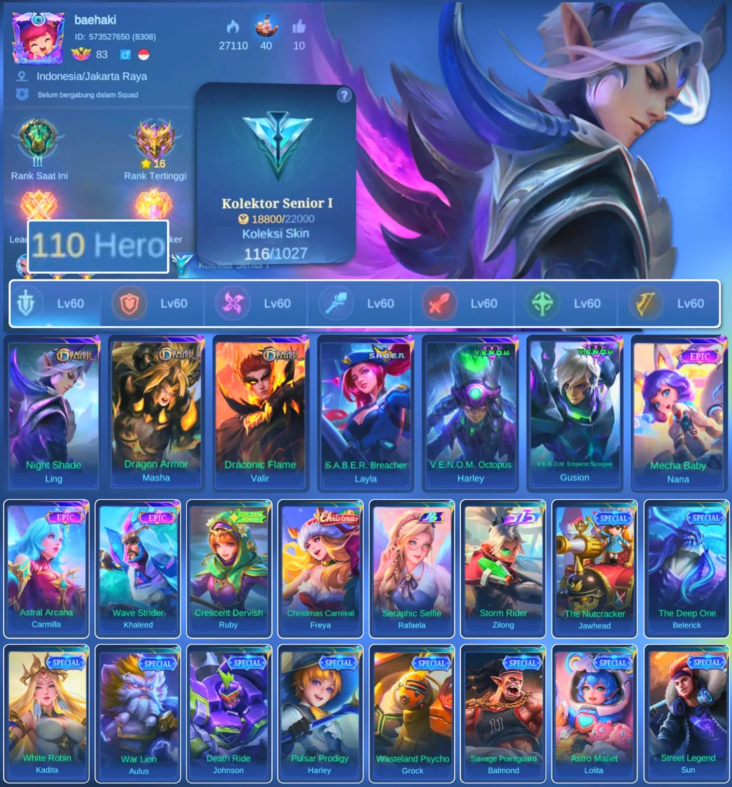 HERO 110 SKIN 116 | EMBLEM GOOD | EMBLEM ALL MAX | EPIC NANA | EPIC KHALED | HERO GOOD | INSTANT DELIVERY
