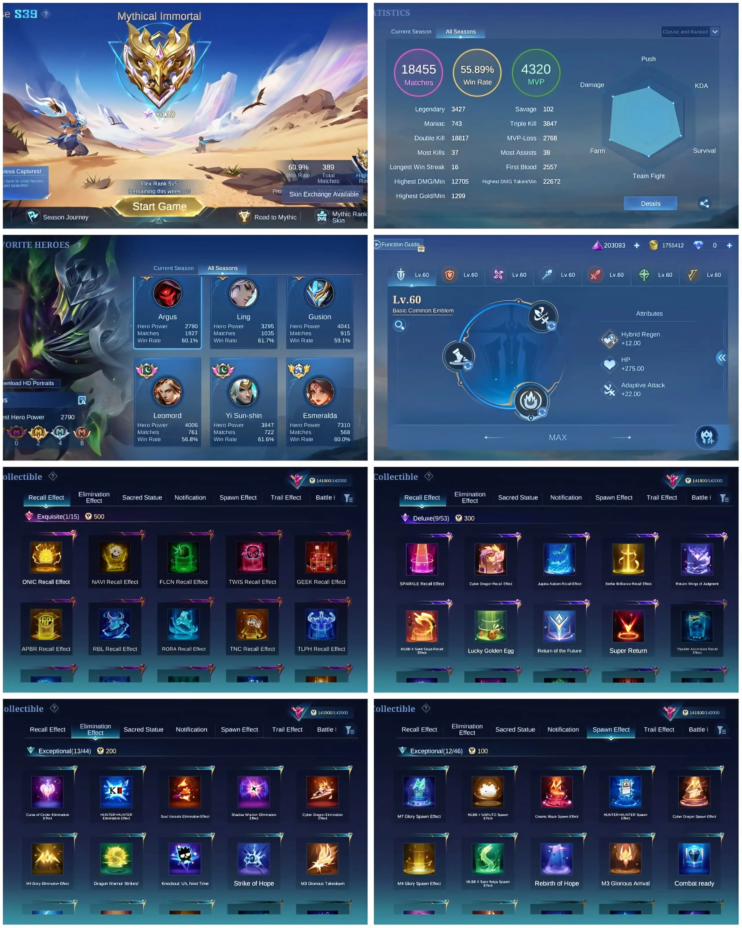 [IOS/ANDROID] CEL LVL 148 | 131 HEROES | 487 SKINS | IMMORTAL 240 HIGH | 2 LEGEND GUSION LUNOX ⸱ AURORA COLLECTOR ⸱ SELENA ZENITH ⸱ BRUNO FIREBOLT ⸱ THAMUZ KFP ⸱ BENEDETTA COVENANT