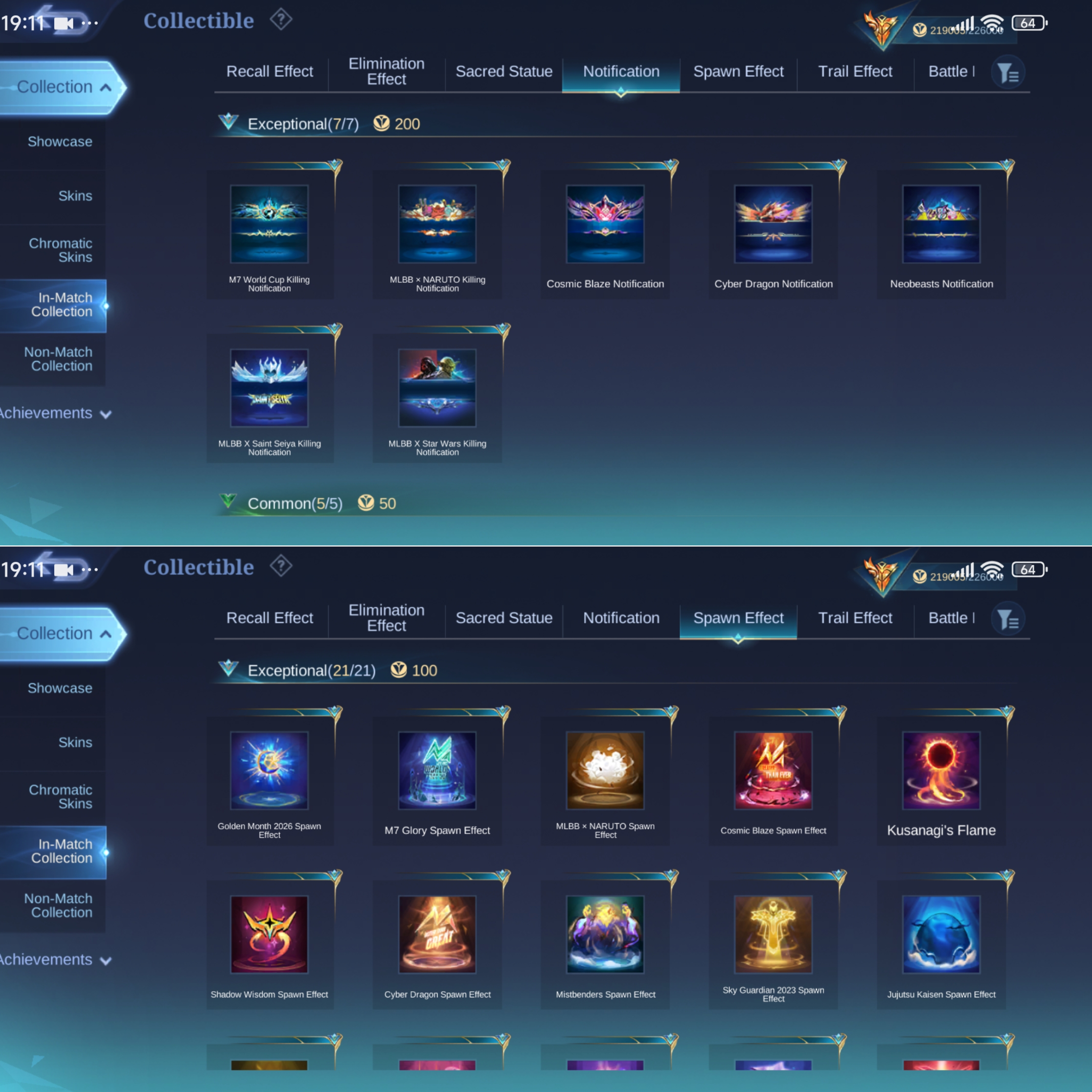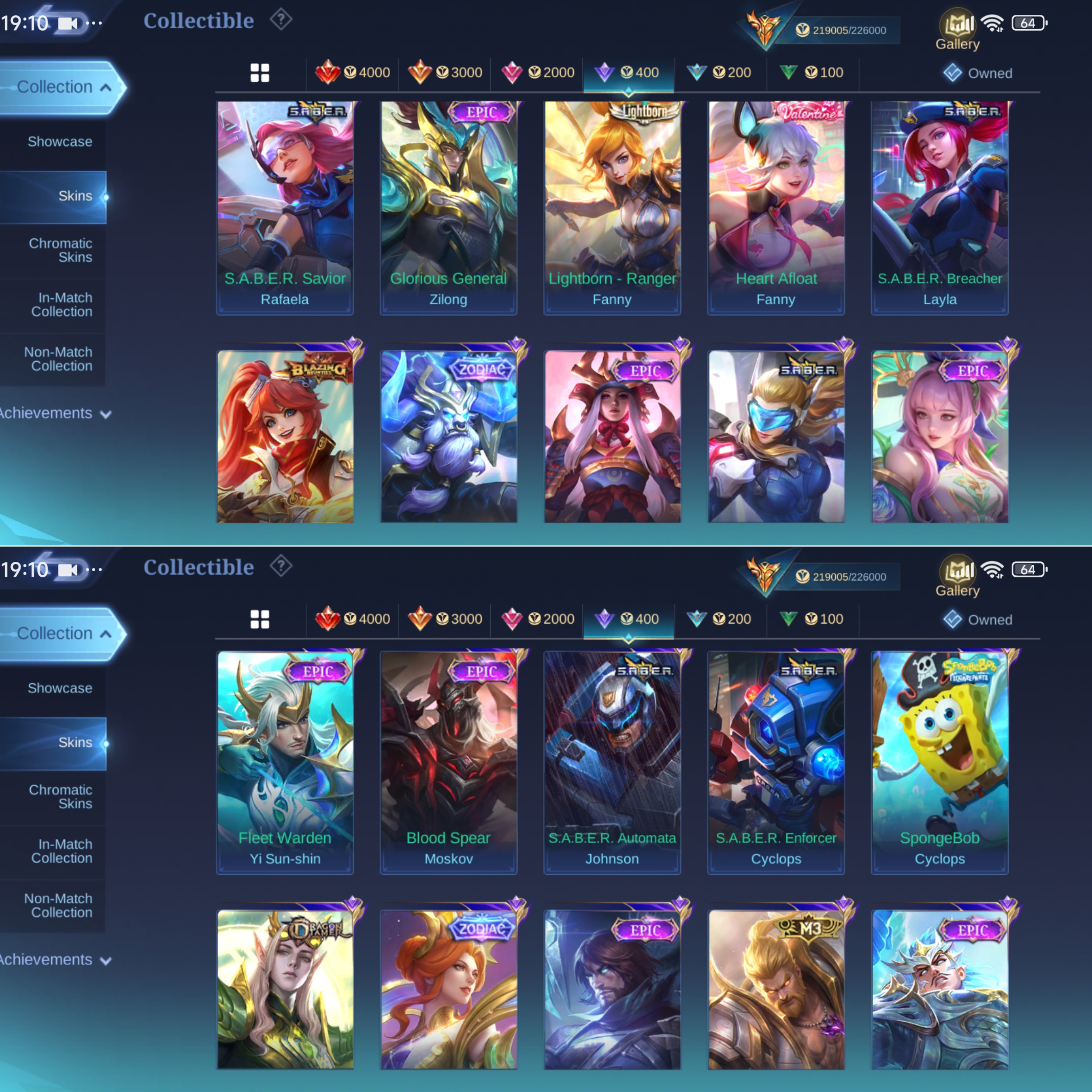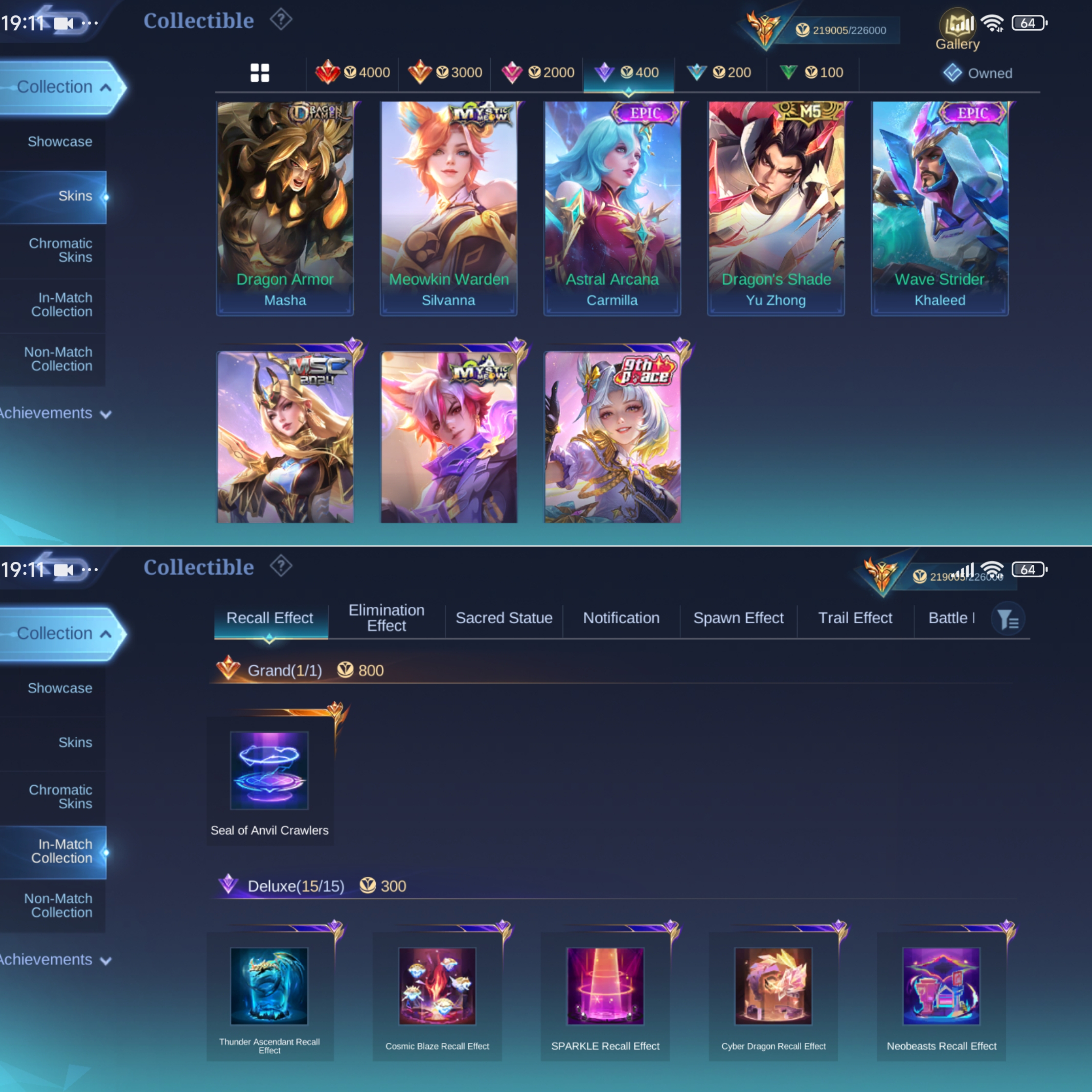 ML-817 Skins 538 [ 4 Legend ] Ex Immortal 133 / 4 Aspirants / Allstar Moskov / Ducati Irithel x Benedetta / Neobeast Lylia / Collector YSS x Pharsa