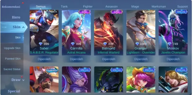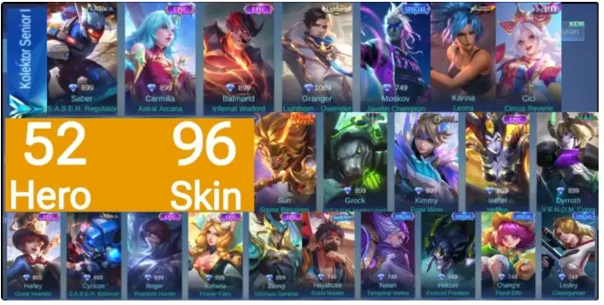 ML452 // 96 Skins, 52 Heroes, Epic 4 Rank, 58% Winrate