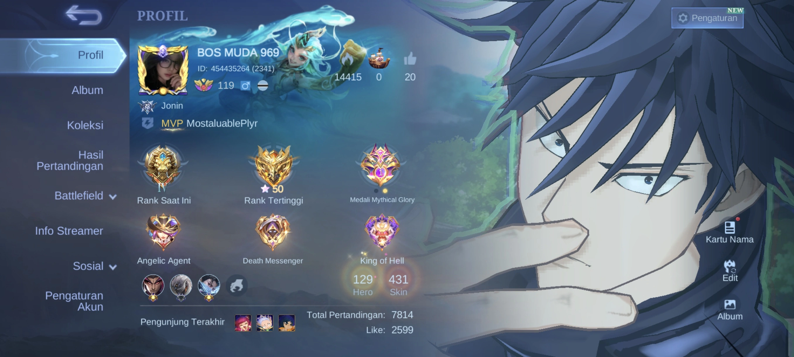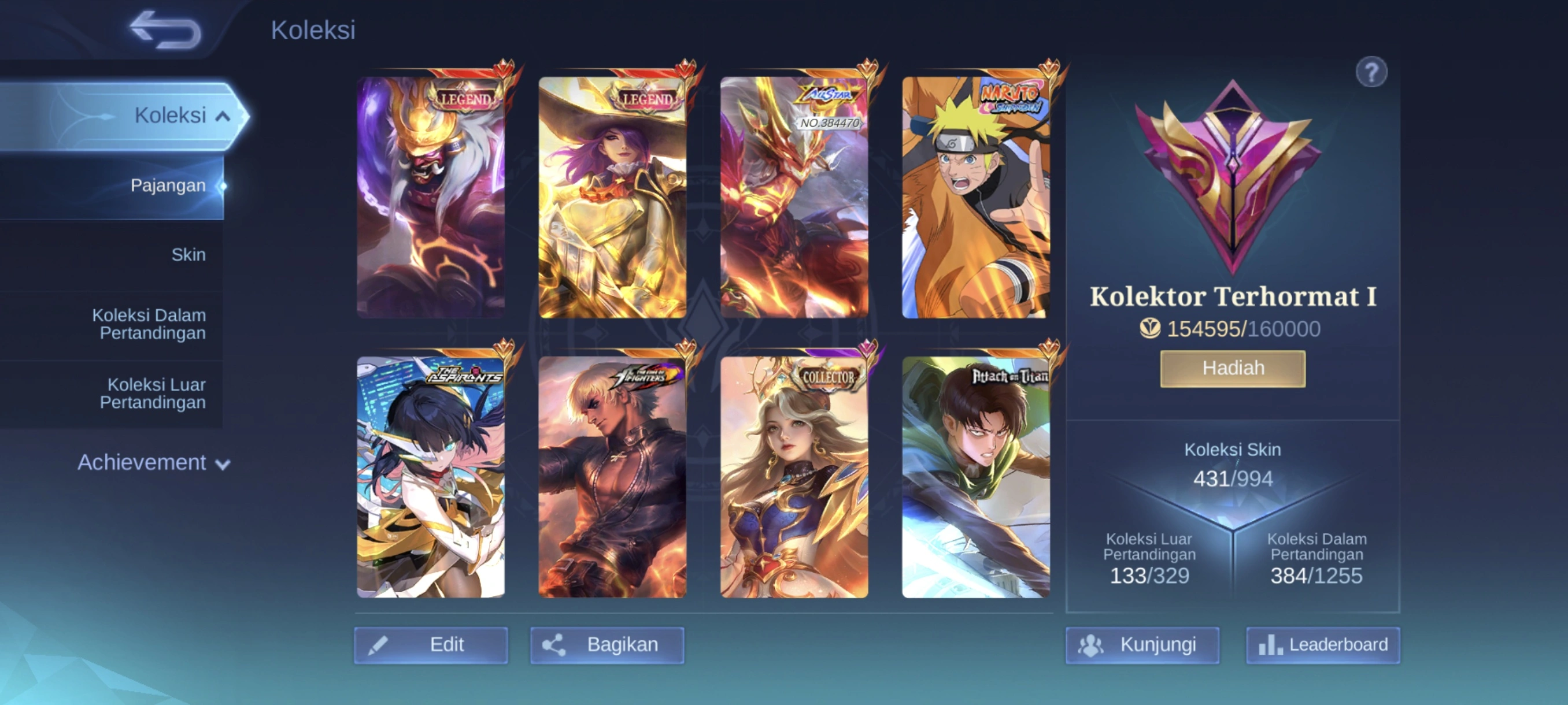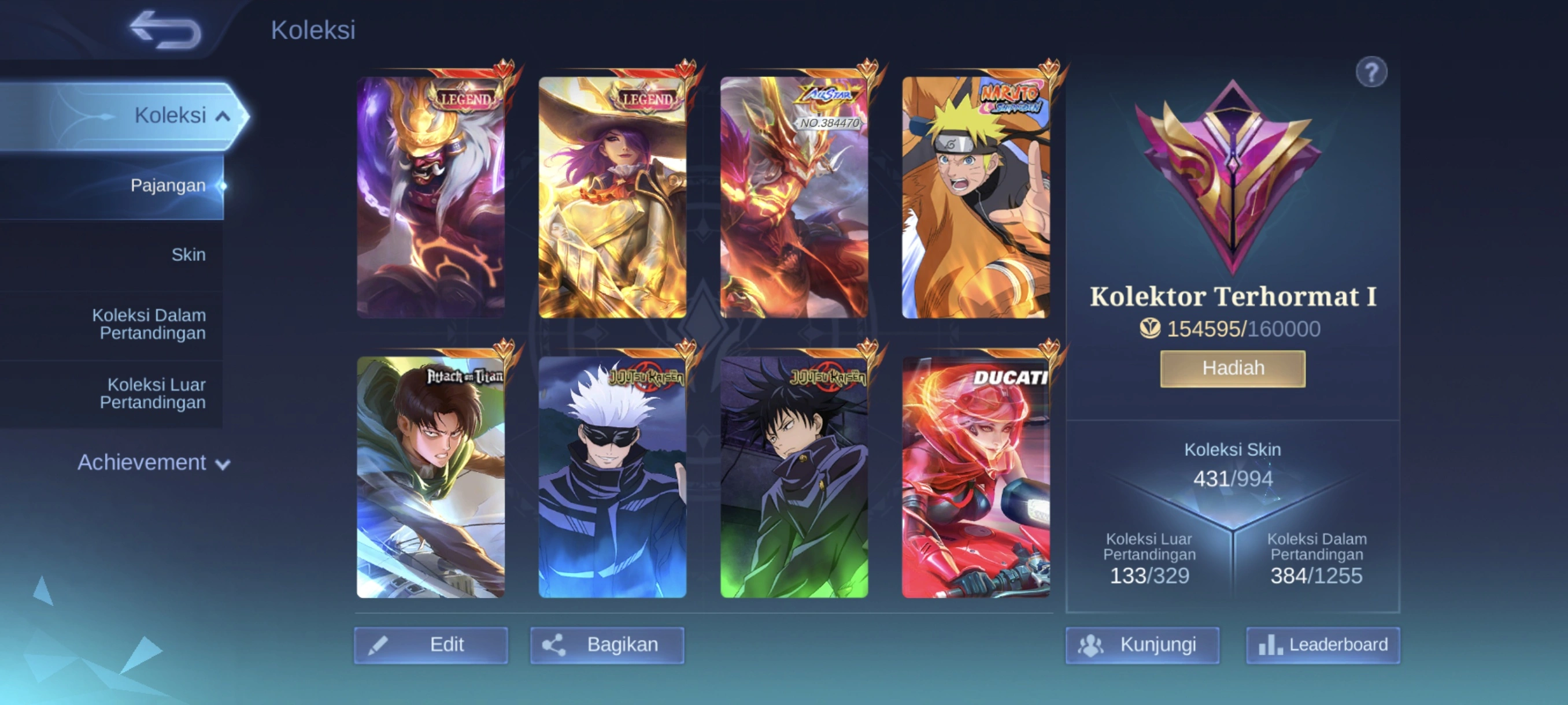 MM280|Lv119|431Skin|EXALTEDCOLLECTORI|2LEGEND|KOF Gusion|ASPIRANTS Ruby|ALLSTAR Moskov|AOT Levi|2JJK|DUCATI Benedetta|NARUTO|COLLECTOR Vexana