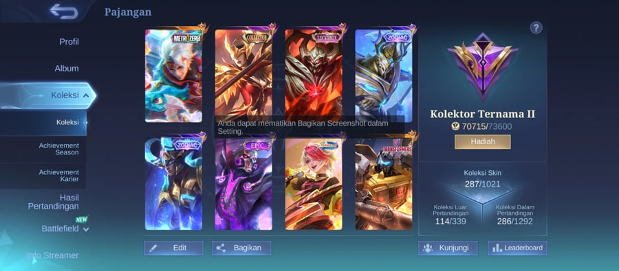 N284|LV 89|RENOWNED COLLECTOR II|258 SKIN|ALPHA LEGEND|LING NEO BEAST|CLAUDE PRIME|SELENA ZENITH|HAYABUSA ANNUAL