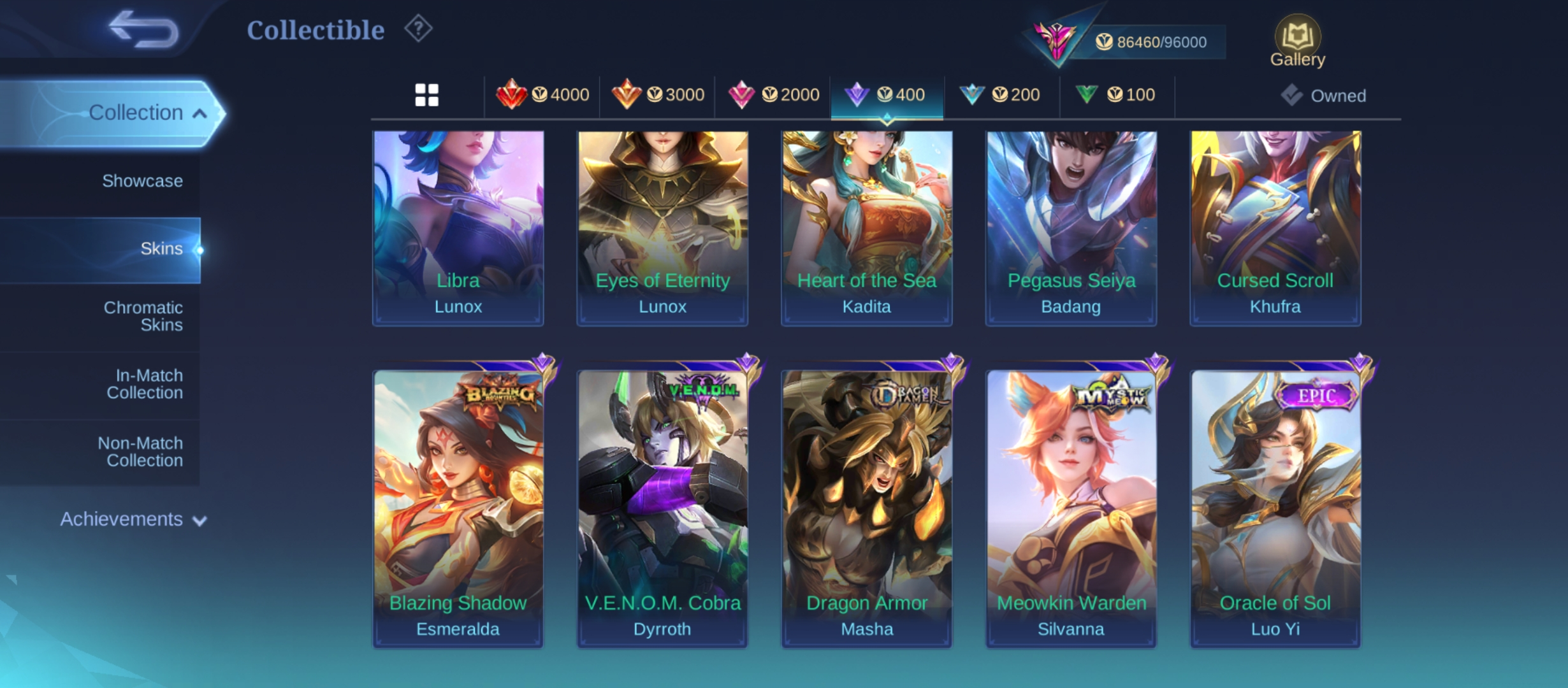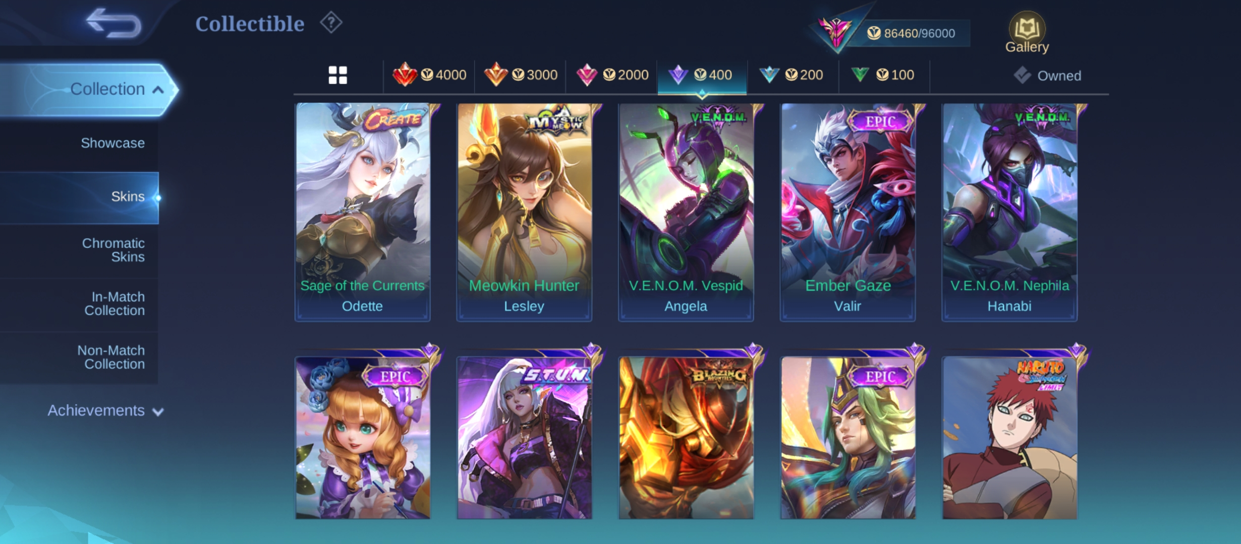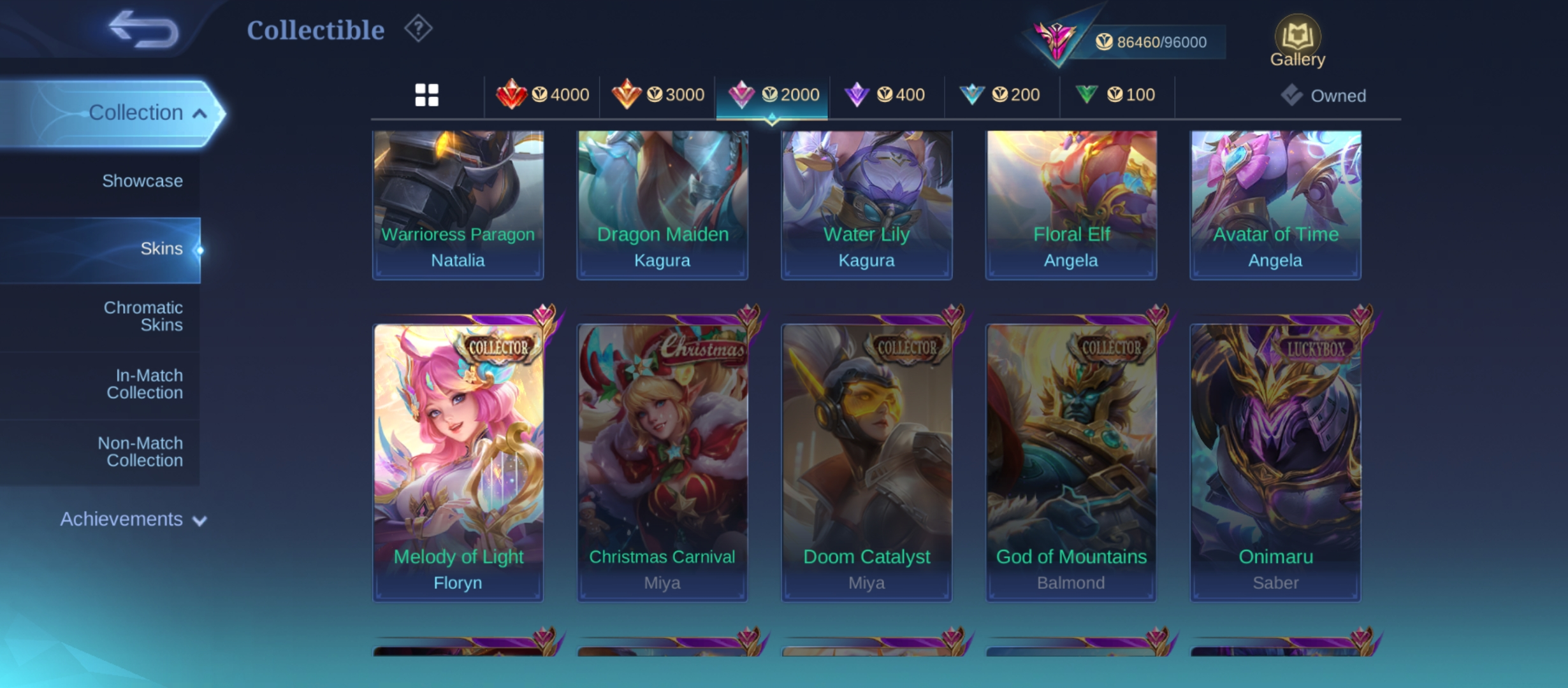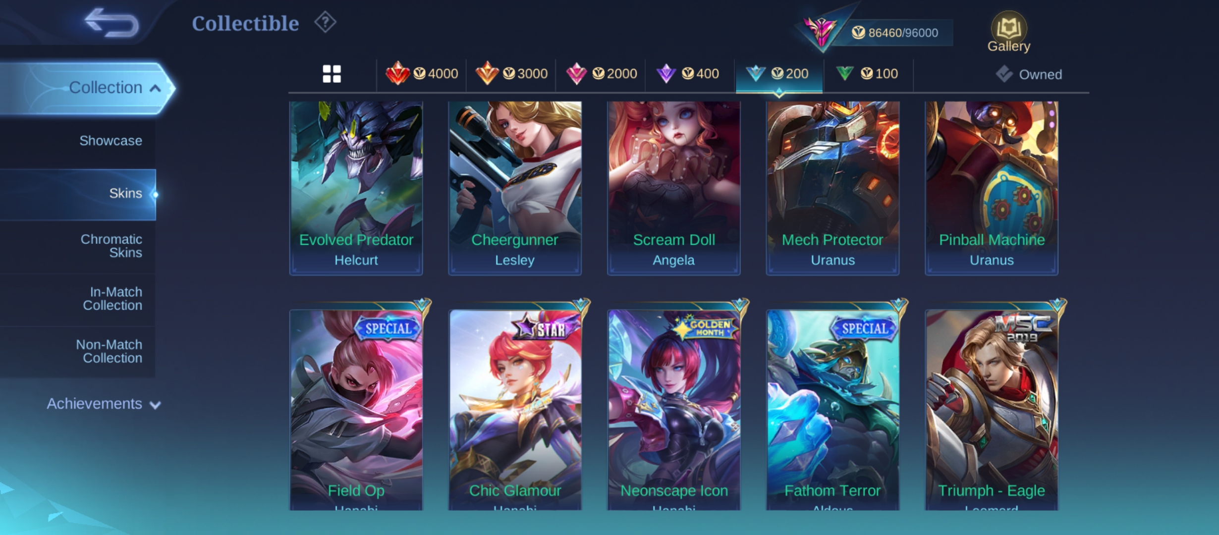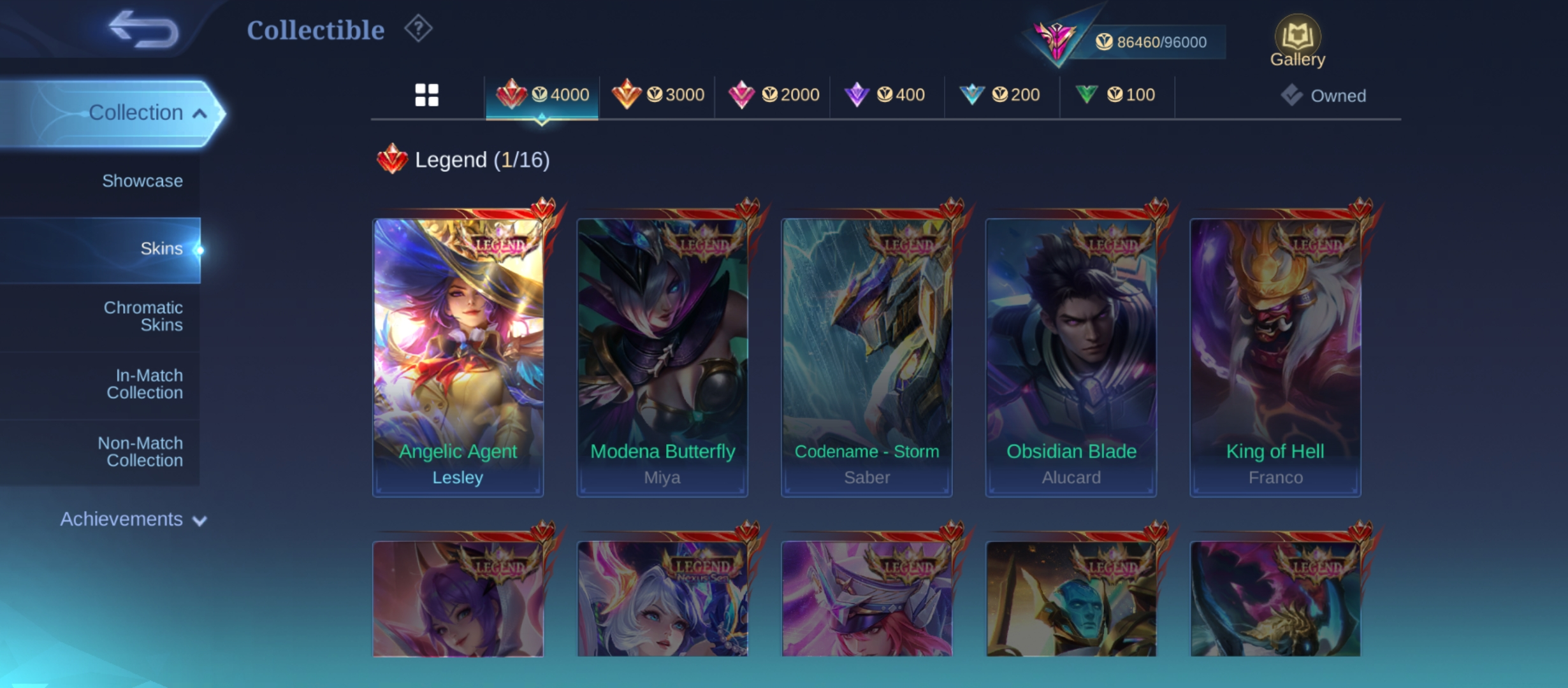 PL622|Lvl 77|EXALTED V|267 SKIN|ALL EMBLEM MAX|LESLEY LEGEND|3 COLLECTOR(FLORYN,ANGELA)|ANGELA KISHIN|PHARSA NEOBEAST|SAKURA KALEA|FLORYN SANRIO|KAGURA LUCKYBOX