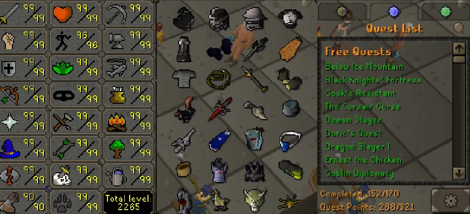 Max Combat Main | 2260+ Total | 280+ QP | 99 Atk | 99 Str | 99 Mage | Avernic | E. Void | F Cape | Assembler | B Gloves | Torso | Rare Pets ⸱ CG117913-3900