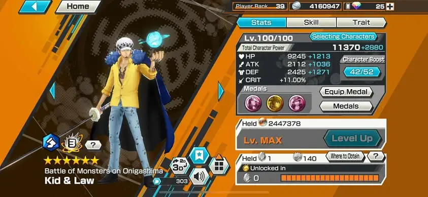 [3408][IOS+ANDROID] 6 EX / Hb 22 / Kid Law ( Can Up Full B52/52 ) + Shanks Light + Yamato Blue + S-Snake + Whitebeard + Big Mom + Whitebeard , Good Medal , Support 165%