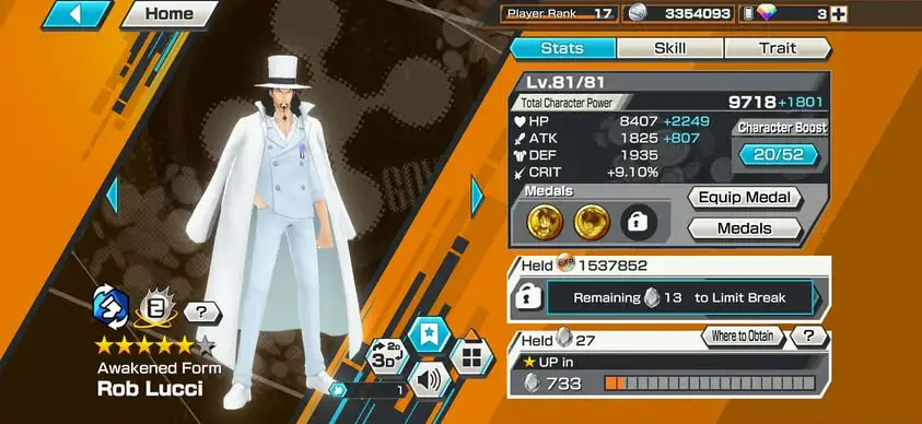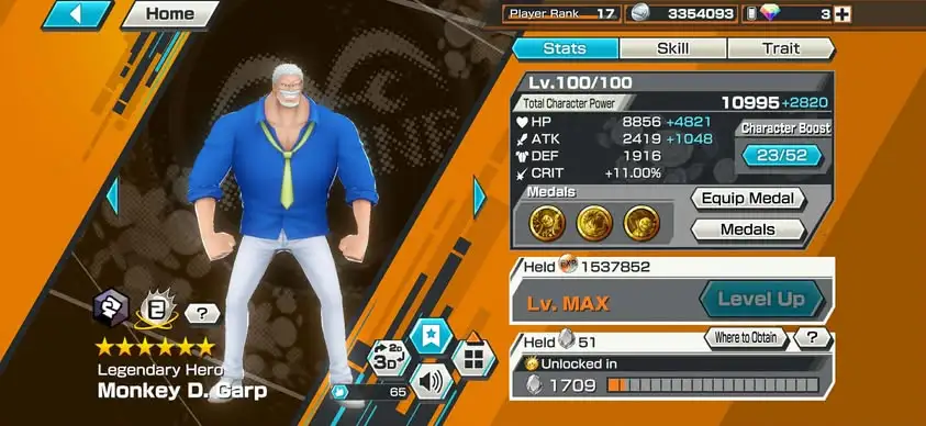 [4153][IOS+ANDROID] 4 EX / Kuzan + Garp + Lucci + Zoro, Support 131%, Good Medal
