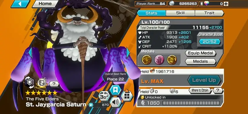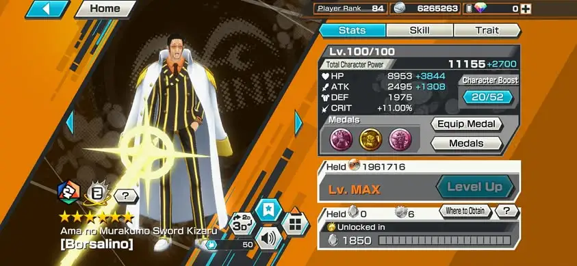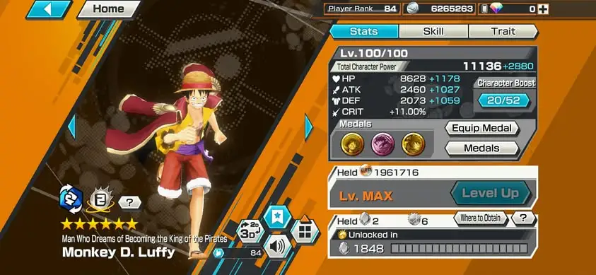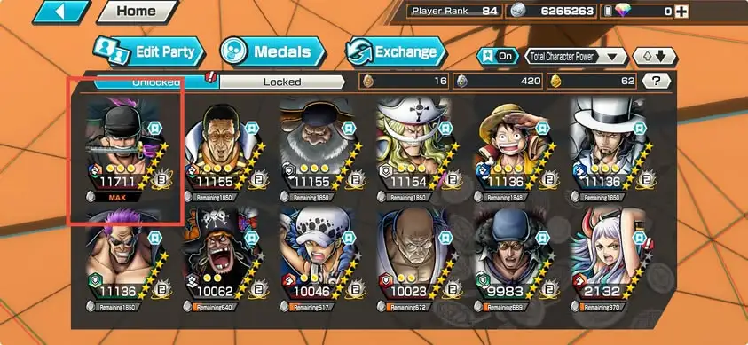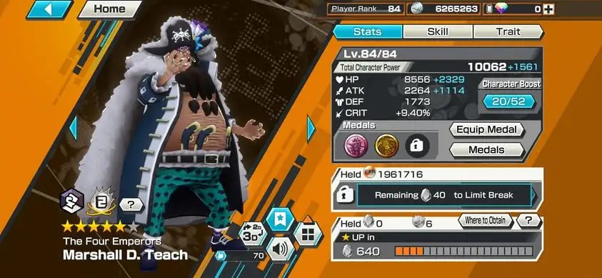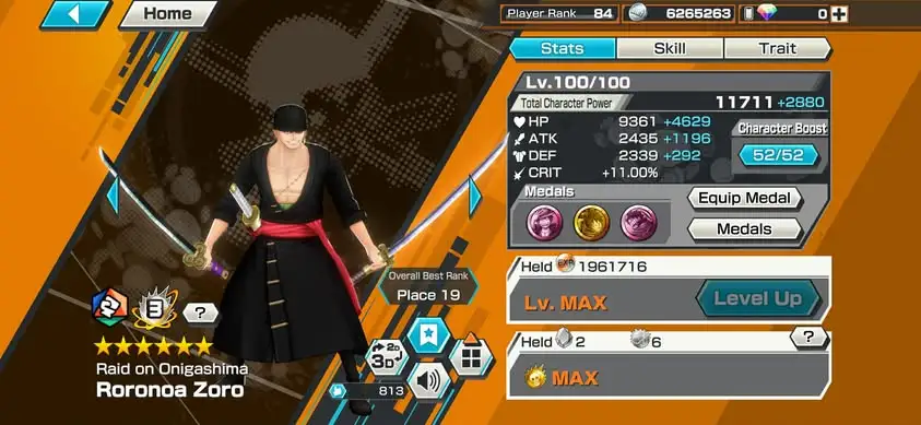 [4166][IOS+ANDROID] 13 EX META / HB 83 / Zoro Full B52/52 + Nusjuro + Kizaru + Blackbeard + Law + Saturn + Whitebeard + Luffy Blue + Lucci + Kuzan + Yamato + Zephyr + Kid Law, Lots of BFs, Support 169%, Good Medal