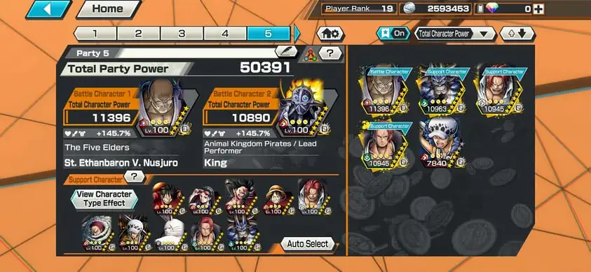 [4177][IOS+ANDROID] 5 EX / Nusjuro B48/52 + Law + Shanks + Kaido Hybrid , Support 145%? Good Medal