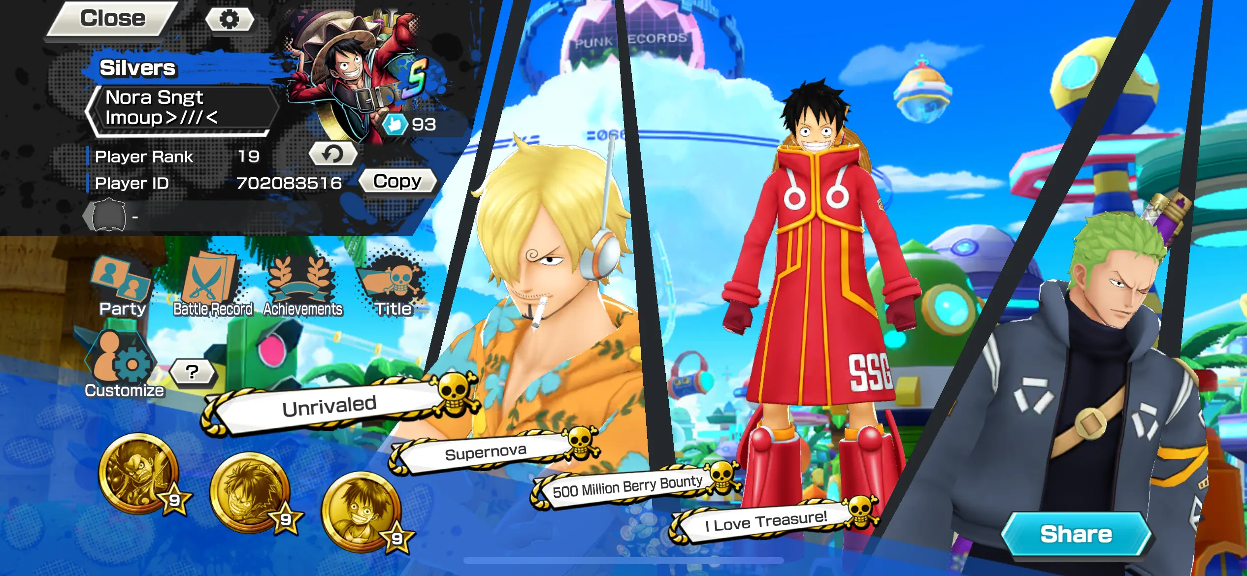 B103🔥2 Ex Meta Max🔥Gold D Roger Max Power 11K🔥Rob Lucci Max🔥Blueno🔥Luffy🔥Jabra Max🔥Support 135 🤝Good Medal🎖️Many Medal Material🥇iOS & Android