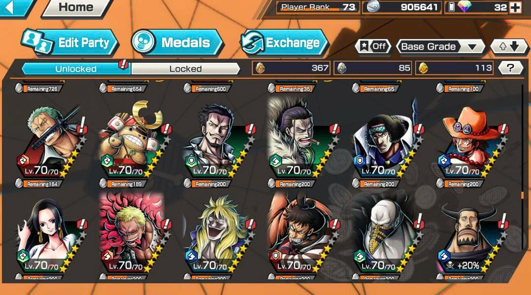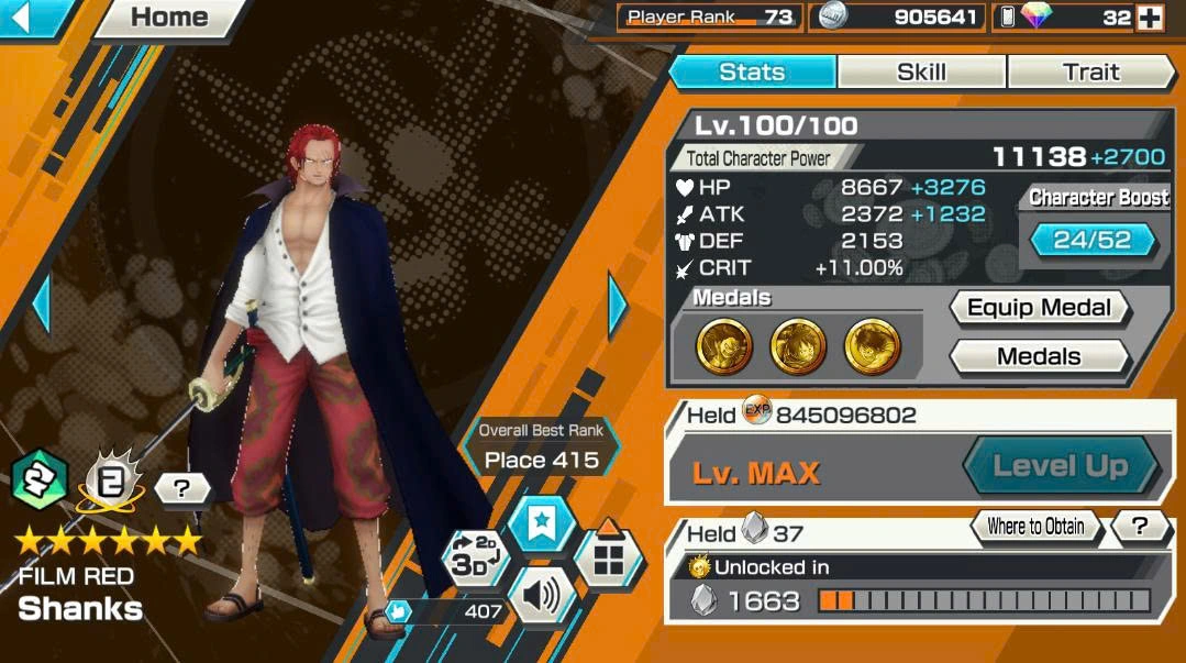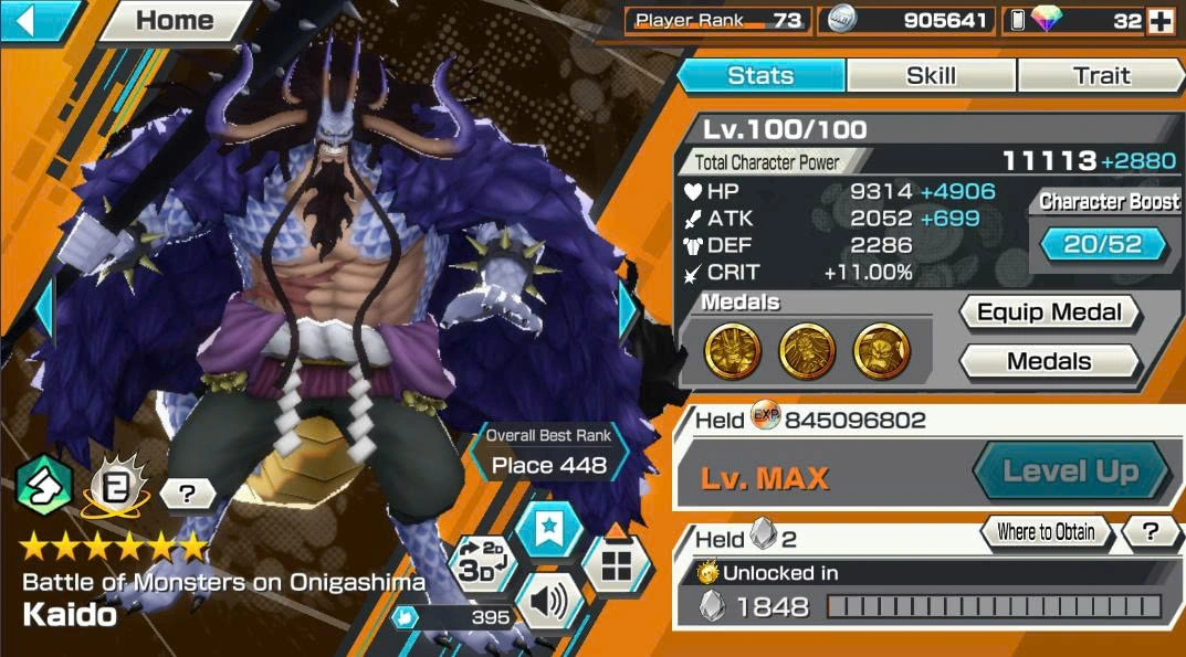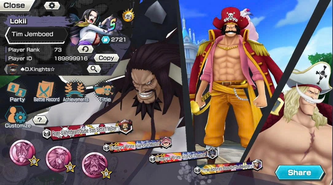 BR663-IOS+Android-Hyber Boost 52+11 Ex Max(Kid Law Skin+Roger v2+Lucci+Kaido v3+Shank v3+Roger+Kaido v2+Yamato+Oden+White Beard+Luffy)+Vip Medal+Support 163%+Many Bounty Festival Max Ben Beckman+King Alber+