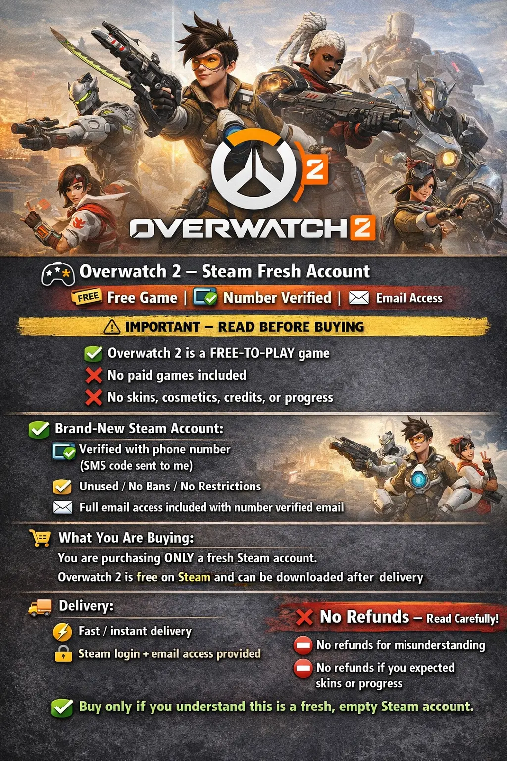 🎮 Overwatch 2 – Steam Fresh Account | 🆓 Free Game | 📧 Email Access 🔗 Battle.net not included