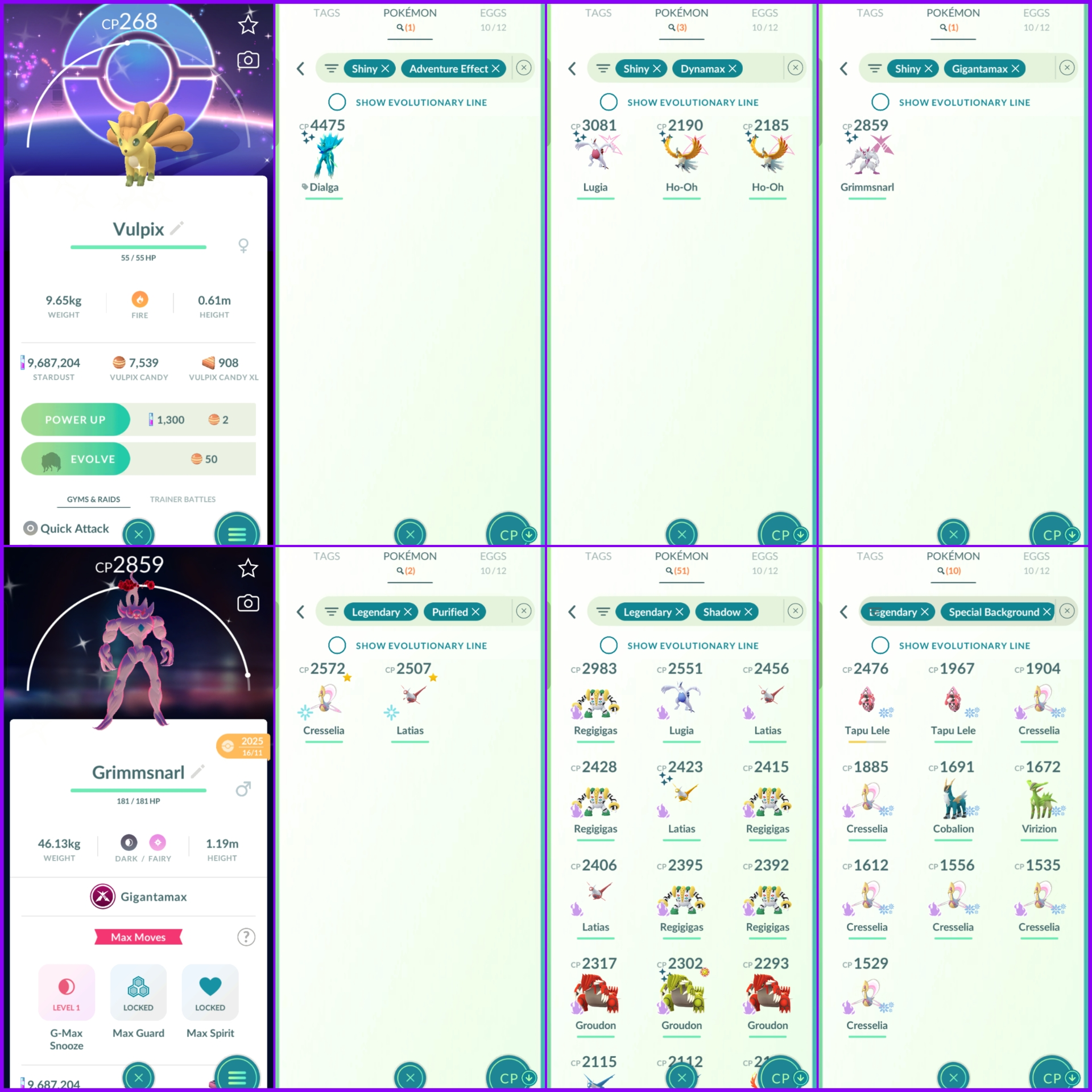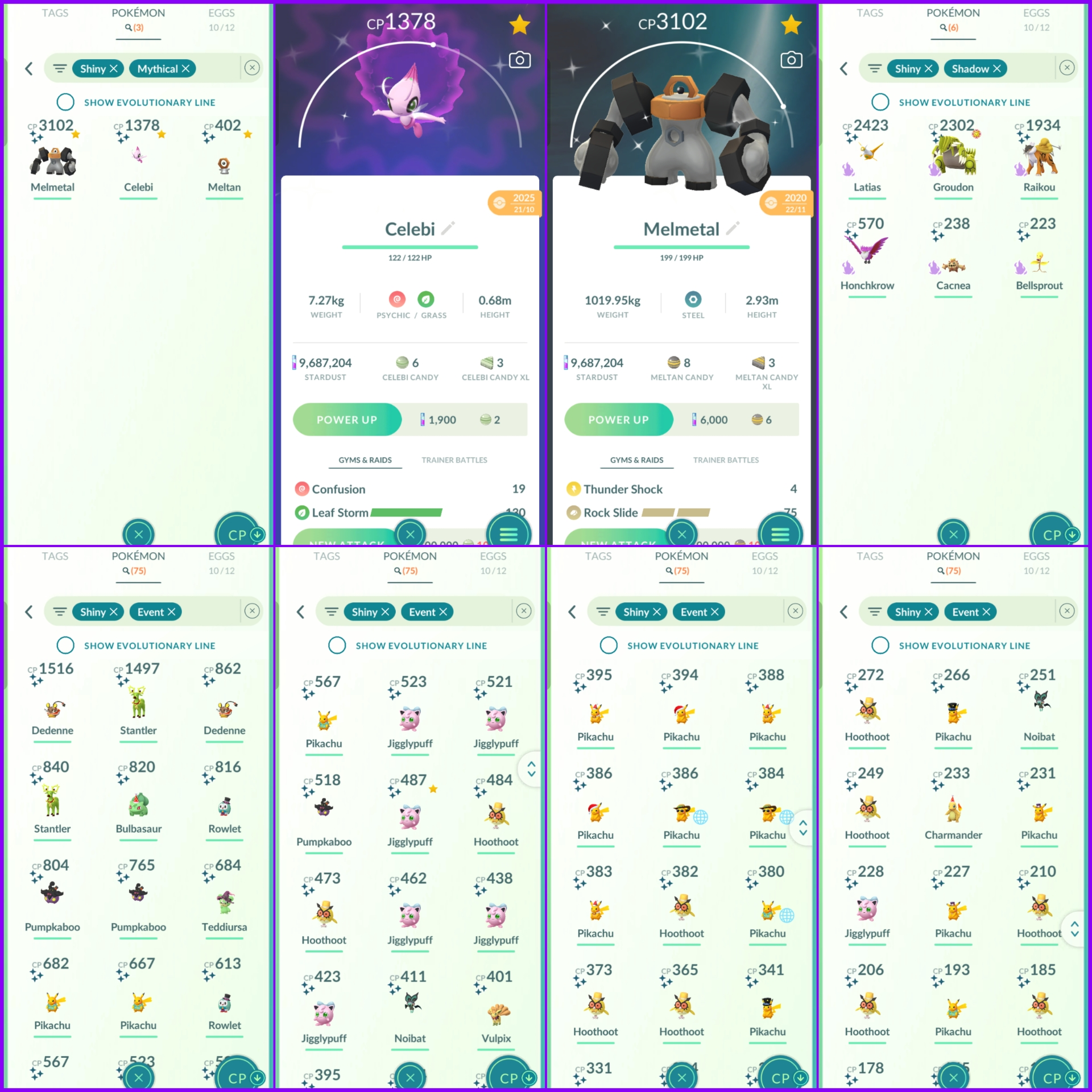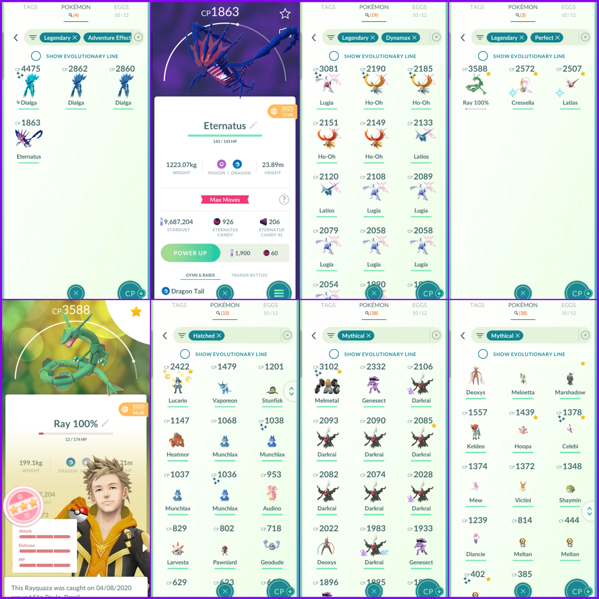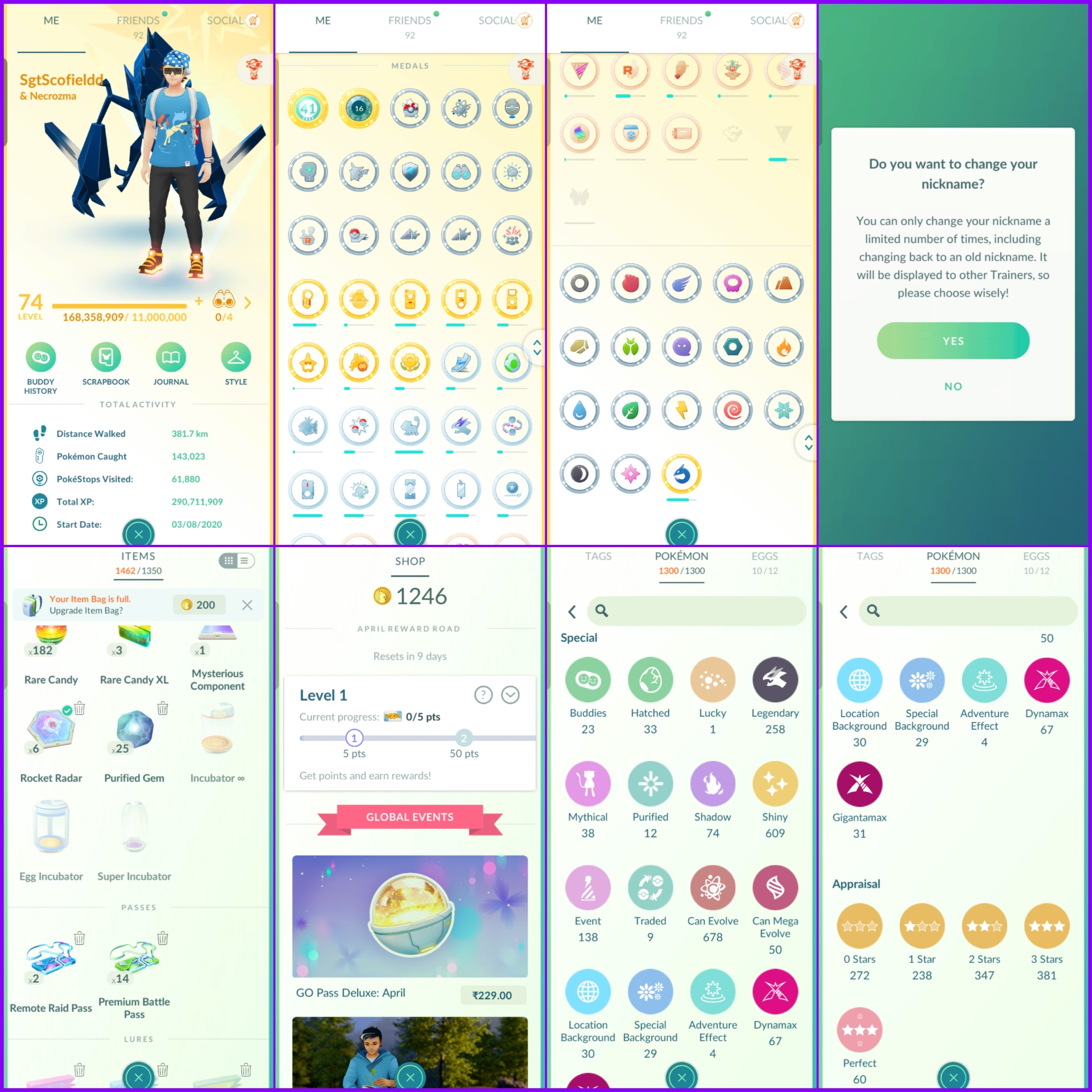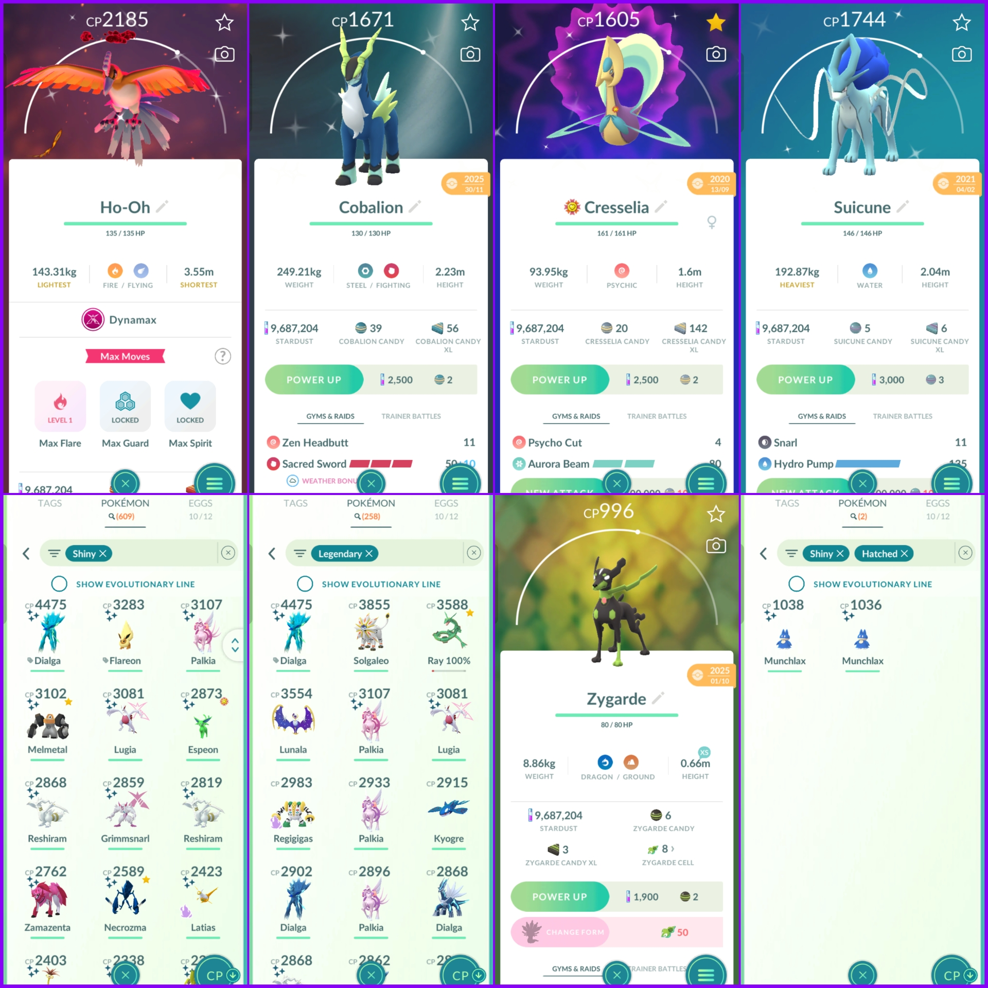 Level 74 Instinct 💫 2020 Creation 💫 1200+ PokeCoins 💫 600+ Shiny 💫 250+ Legendary 💫 9.6M Stardust 💫 Crazy Stacked Rare Pokemons