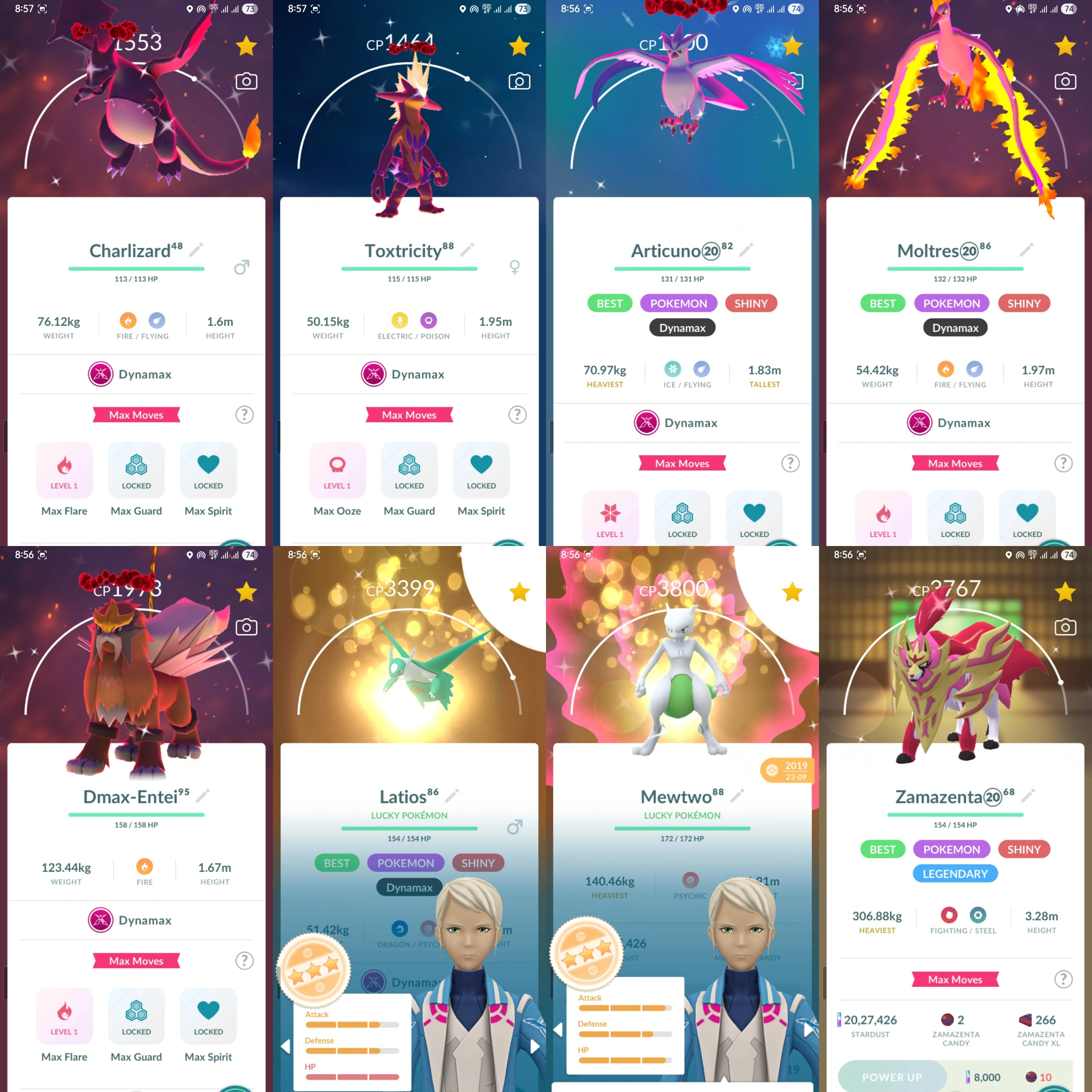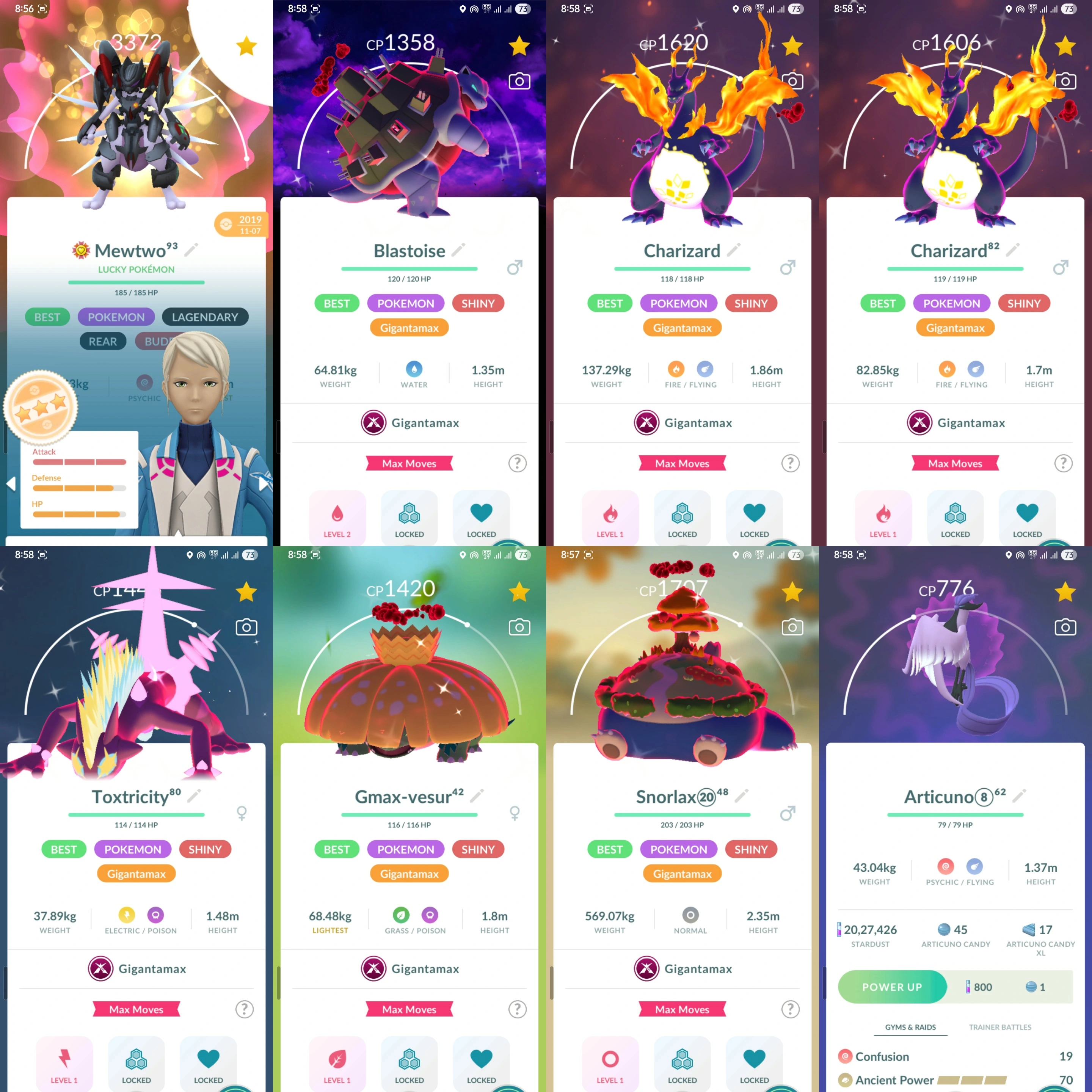 [LUCKY TRADED ARMORED MEWTWO, SHINY SPECIAL BG GMAX BLASTOISE, SHINY GMAX (2*CHARIZARD, VENU, TOXTRICITY), SHINY DMAX (ARTICUNO, MOLTRES)] 315+SHINY