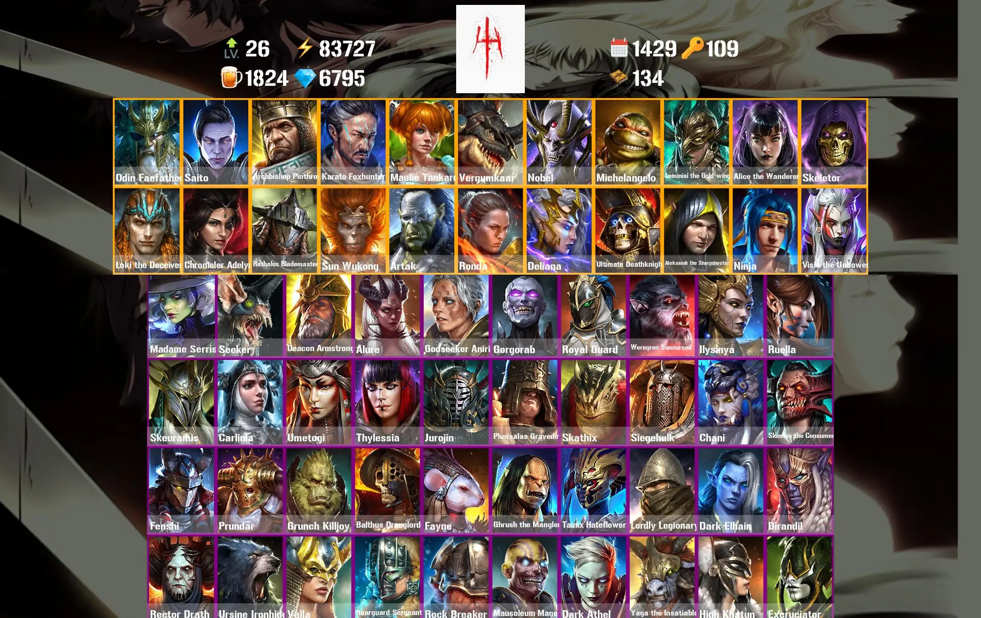 1429 Days 83.7k Energy Odin Faefather ⸱ Saito ⸱ Archbishop Pinthroy ⸱ Karato Foxhunter ⸱ Maulie Tankard ⸱ Madame Serris ⸱ Seeker ⸱ 48.3m Silver ⸱ 6.8k Gems