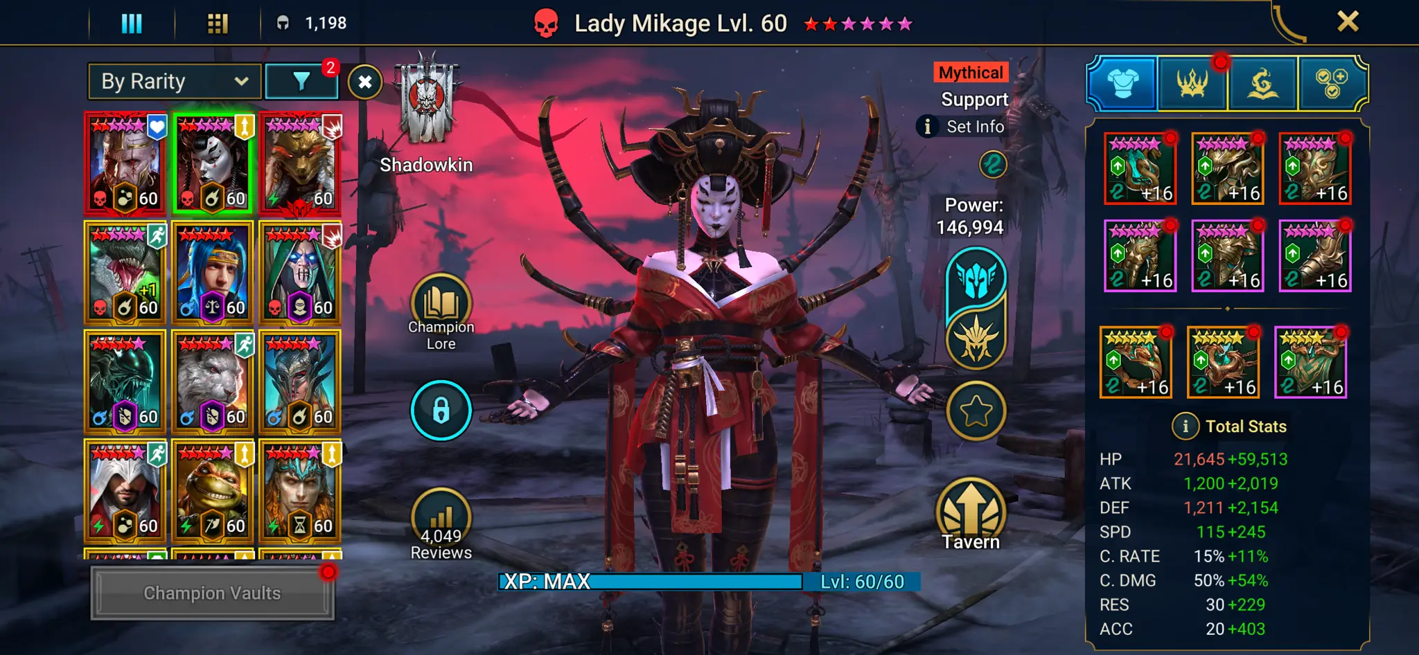 [3 Mythical Champions][16.44M] Lady Mikage,Mezomel,Embrys + 152 LEGENDARY (Leonardo+Donnie+Mich,Arb 398,Titus,Leo,Warlord,Niamhe,Lamasu,Nekhret,Osgrun,Nekmo,Granyt,Eostrid,Trunda,Elva,Sicia...) + 1k UNM + 25 SD/25 SHOGUN AUTO + SHARDS(160a+193v+8p+15s)