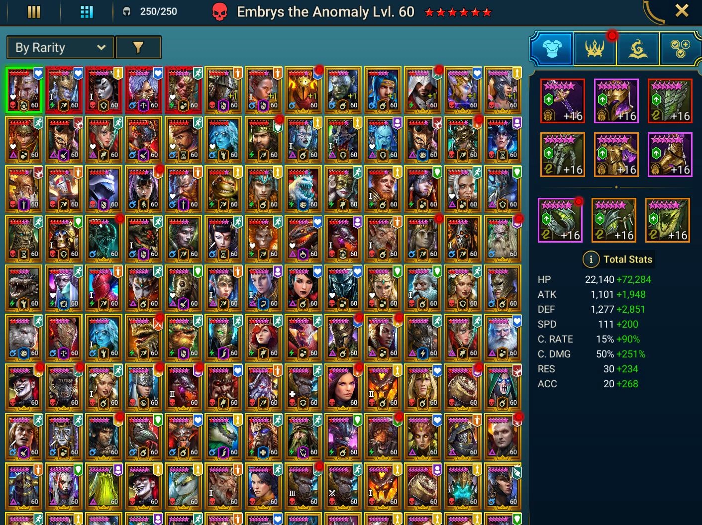 5 Mythical ⸱ Embrys 6 \ Karnage + Toshiro + Mikage + Gharol \ Marius + 134 LEGENDARY + 19.8M POWER \ Acrizia 6 RED + Marichka 6 \ Top Souls on Leg #LOT-359688