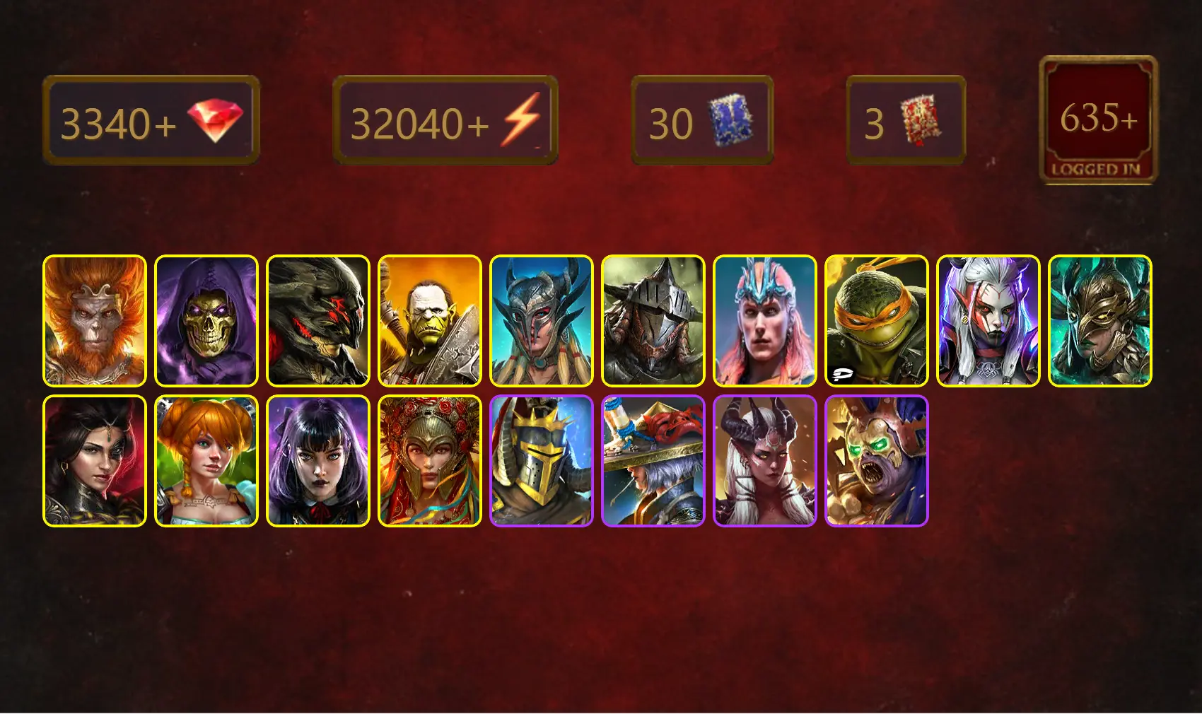 [STARTER]Marichka+Elva Autumnborn+Wukong+Skeletor+Wythir+Artak+Scyl+Vizier Ovelis+Rathalos+Loki+Michelangelo+Visix+31Epics