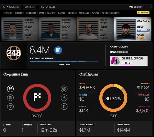 SOCIAL CLUB / ROCKSTAR / PC / LEGACY | $14.3M total money(bank&cash) | GTA5 ONLINE RP LVL(Level) 248 | MALE | STORY MODE avaliable | Changable Email | HANDCRAFTED