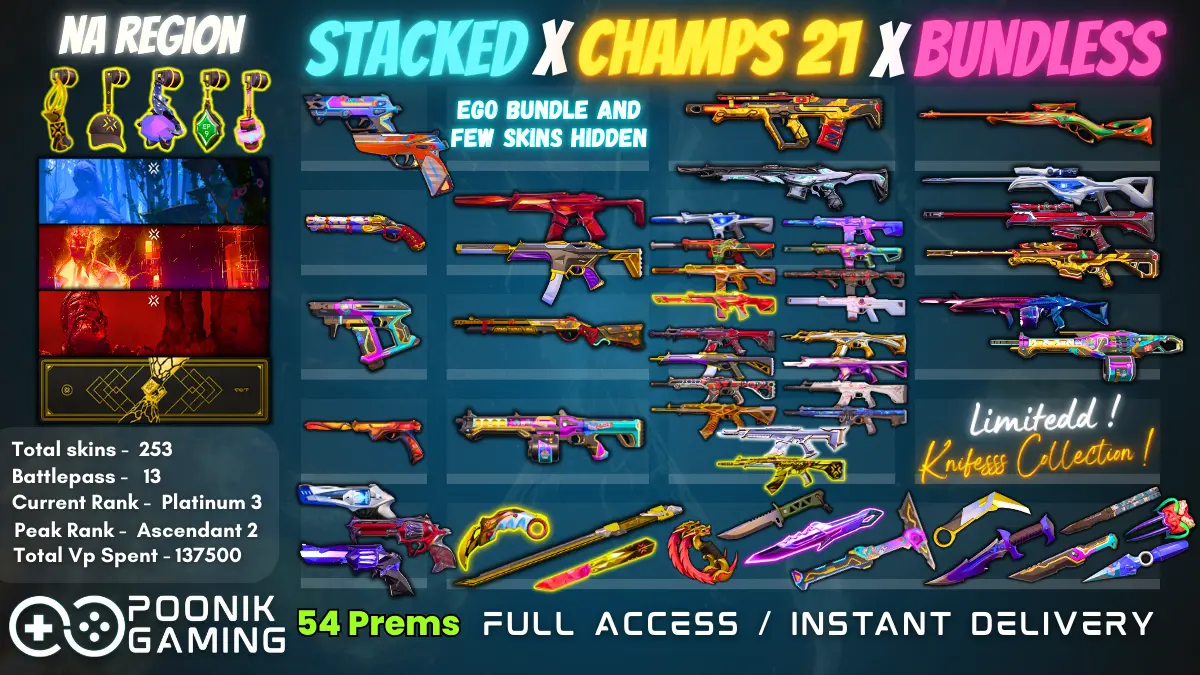 ![🎯 87 SKINS ⸱ AP REGION | 📹 VIDEO: imgur.com/a/siffMks | CHAMPIONS 2024 BUNDLE, KURONAMI & DIVERGENCE VANDAL, 5 BP, 258 BUDDIES! [V669]](https://cdn.gameboost.com/games/valorant/tiers/Platinum.webp)
