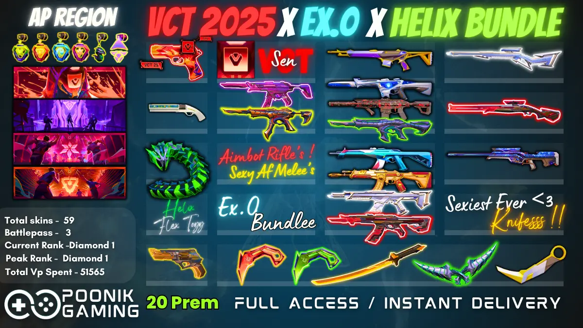 🎯 55K VP SPENT ⸱ AP REGION | 📹 VIDEO: imgur.com/a/phIwiVu | EXO BUNDLE, VCT 2025 KARAMBIT, KURONAMI, PRIME, HELIX & MORE! [V603]