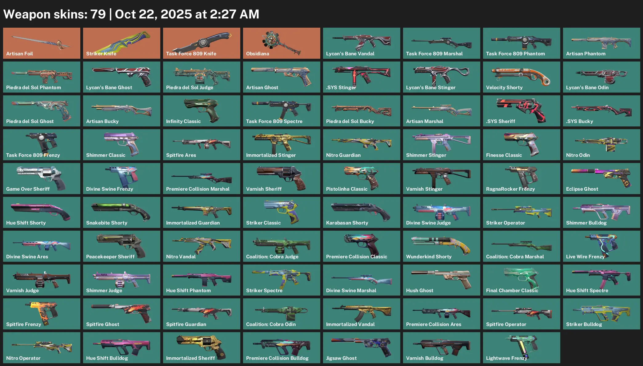 AP | 79 Skins | exp BRONZE 3 | Task Force 809 Knife | Artisan Foil | Immortalized Vandal | Nitro Vandal | Lycan's Bane Vandal | S4G