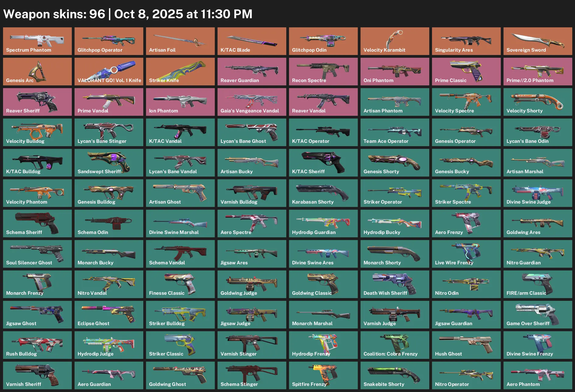 AP | 96 Skins | exp SILVER 1 | Sovereign Sword | K/TAC Blade | Prime Vandal | Reaver Vandal | Gaia's Vengeance Vandal | Spectrum Phantom | S4G