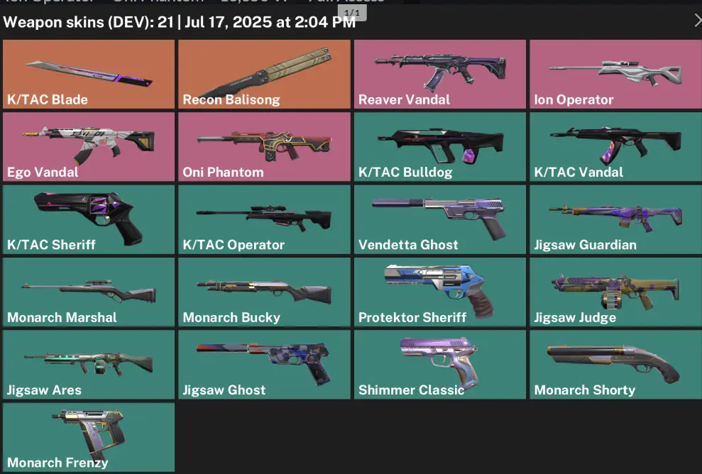 [EU] 🔥 | 21 Skins • Recon Balisong + Reaver Vandal + Ion Operator + Oni Phantom • 10,650 VP • Full Access