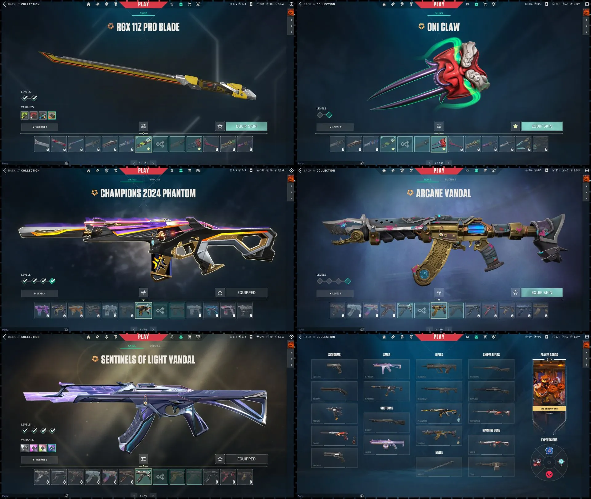 NA | Champions 2024 Phantom, Arcane Vandal, RGX 11z Pro Blade, Oni Claw, Sentinels of Light Vandal | 2 knives 12 Skins | Full Access With Email Change #999