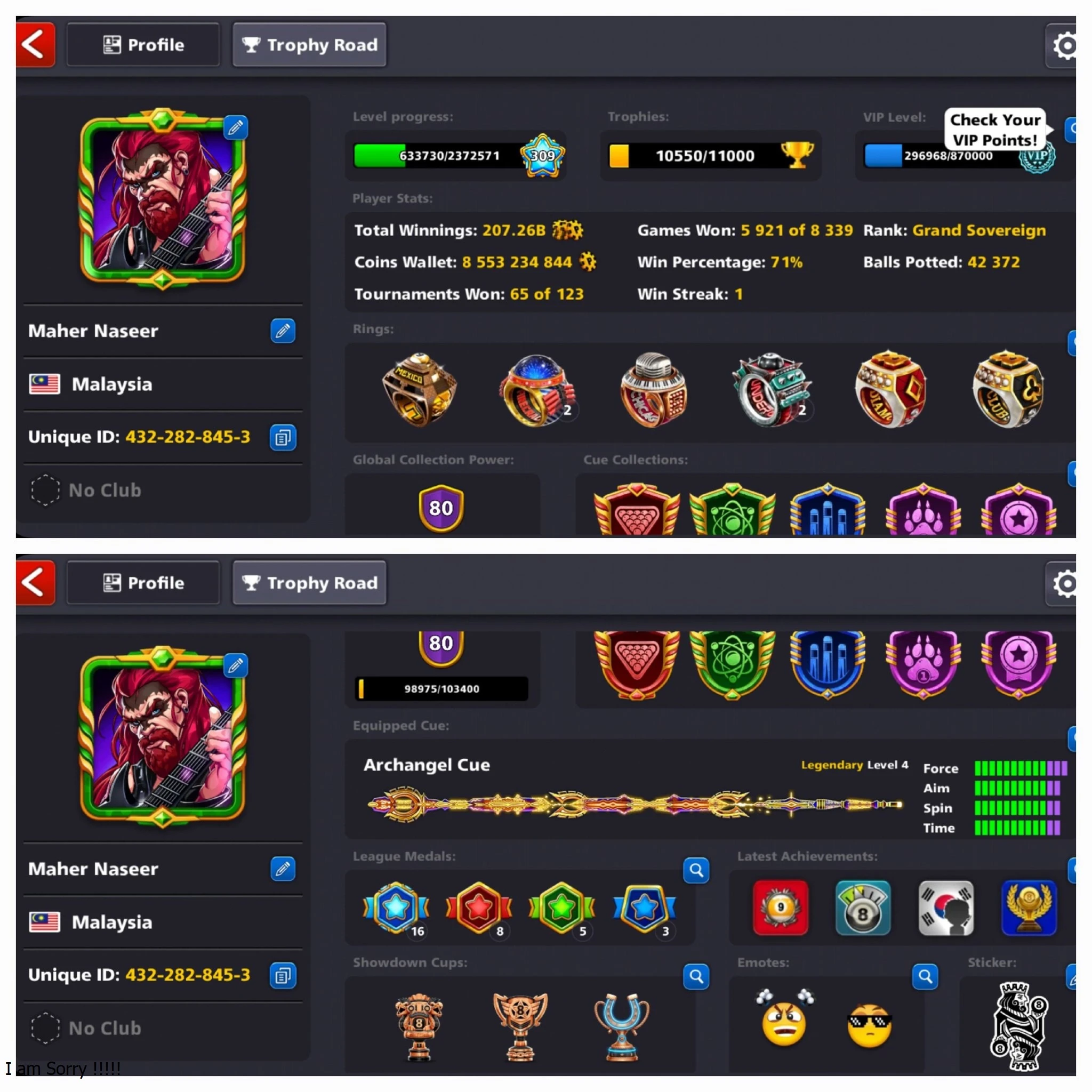 🎱 8 Ball Pool Account | 💰 8.5B Coins | 💎 80 CCP | ⭐ Level 309 | 🥇 All Legendary Cues | 💍 VIP Diamond | 😇 Full Safe | 🚀 Instant Delivery