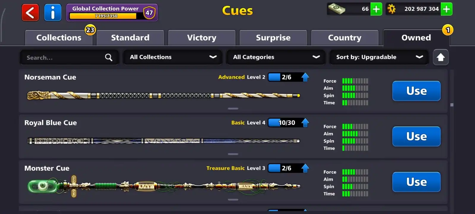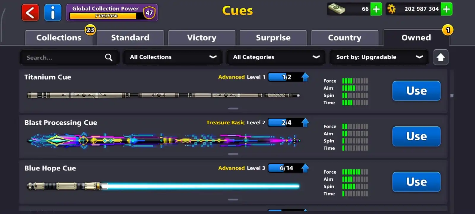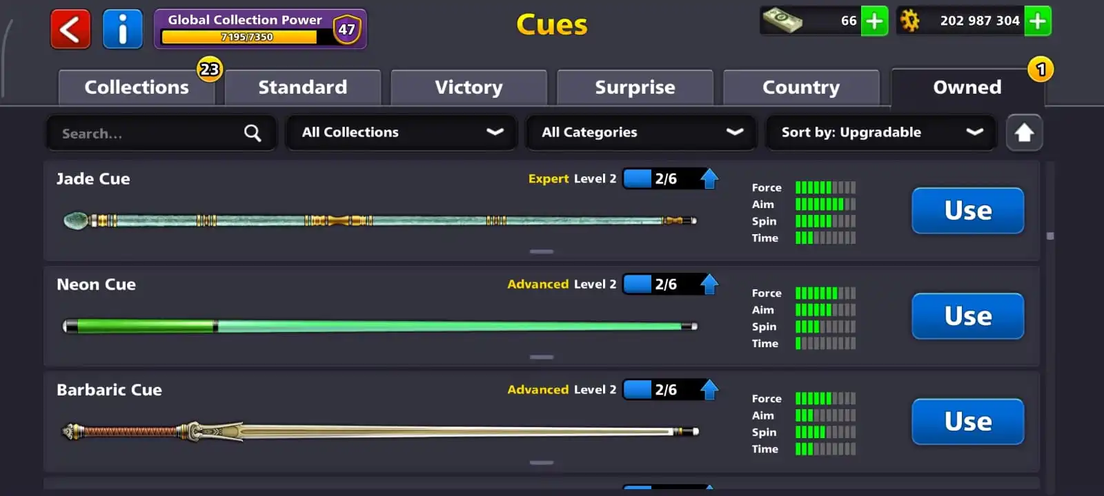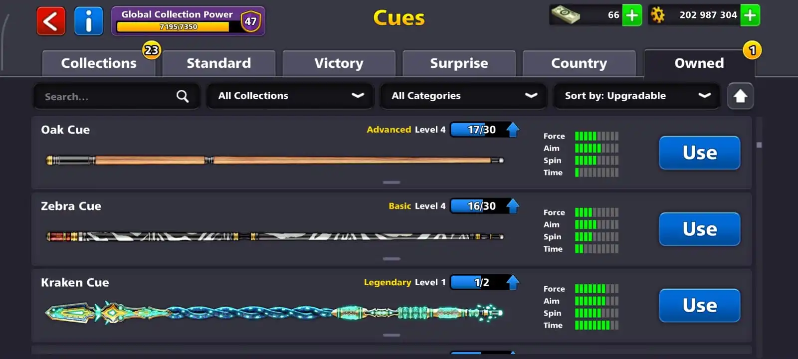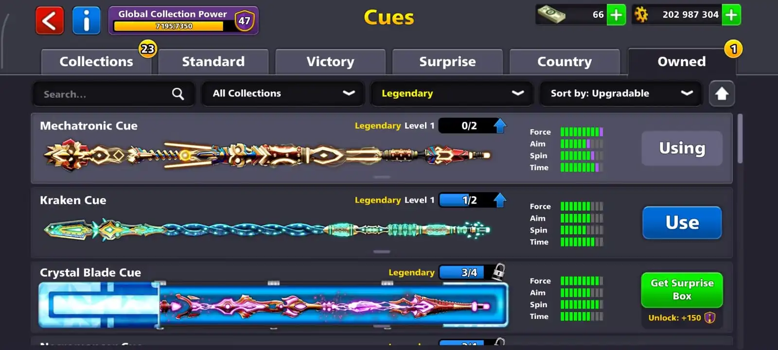Android🔥level 68🔥coins 202M🔥cue legendary 2🔥full access account🔥