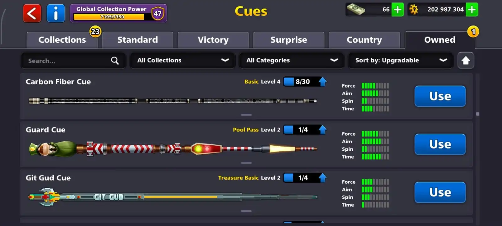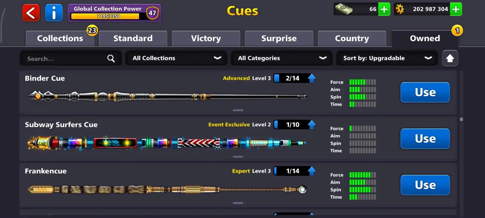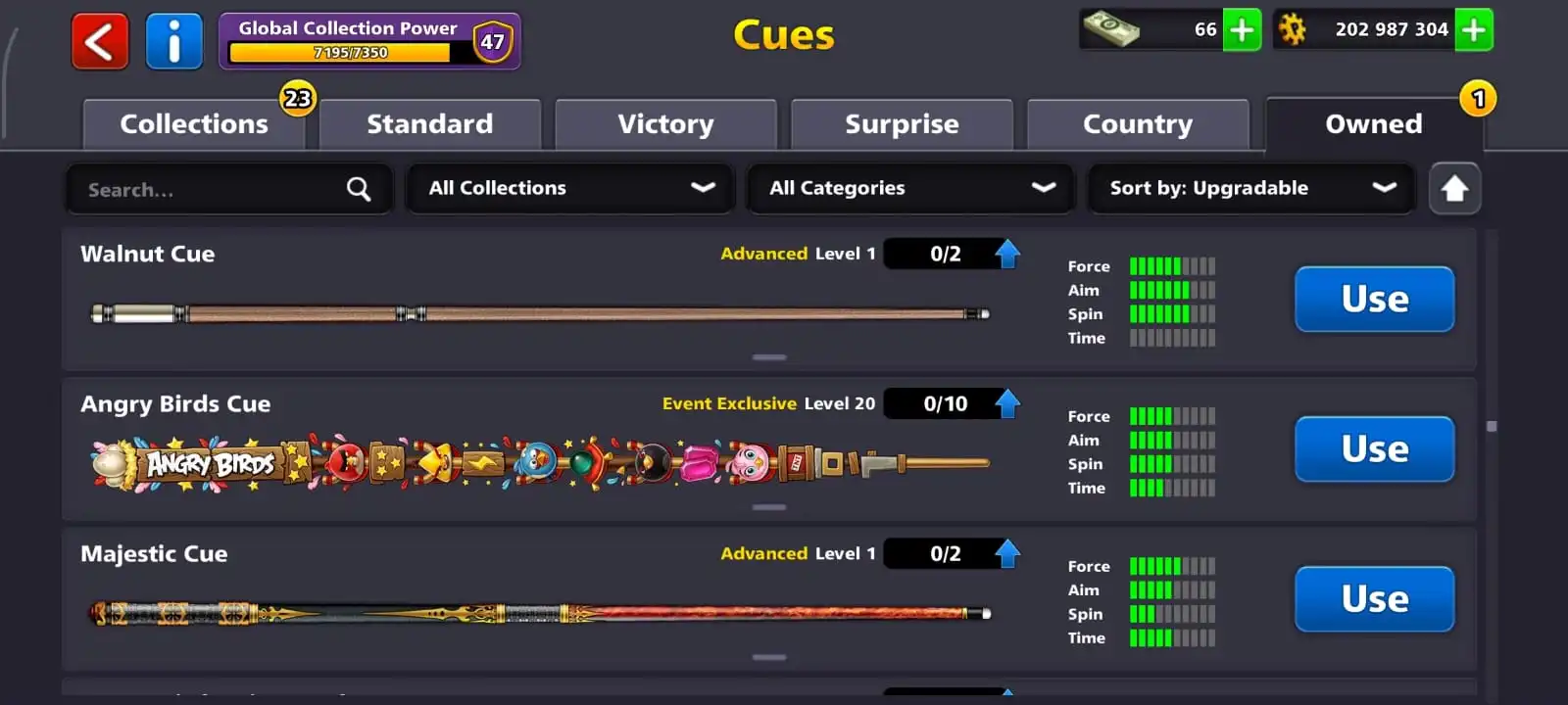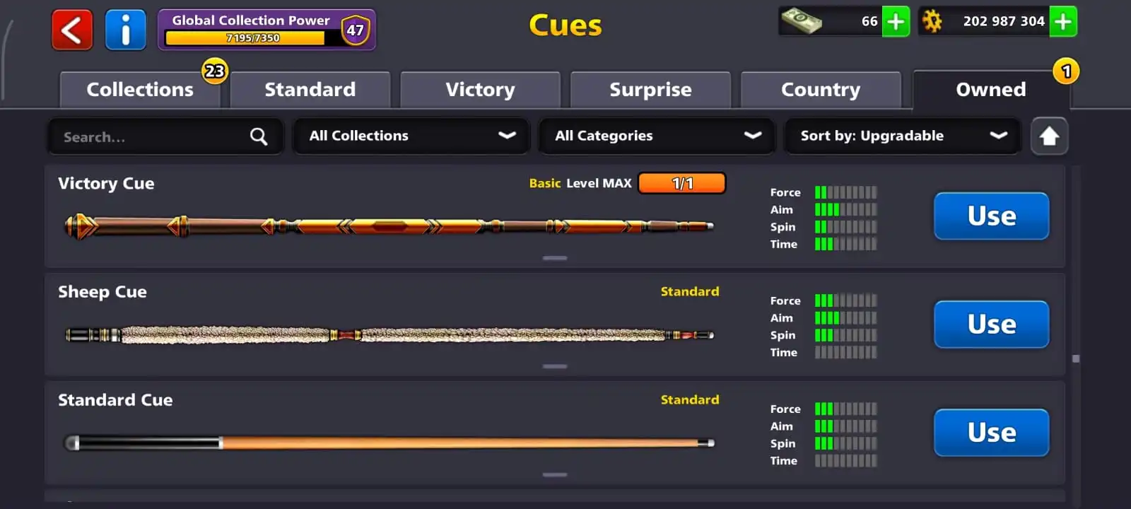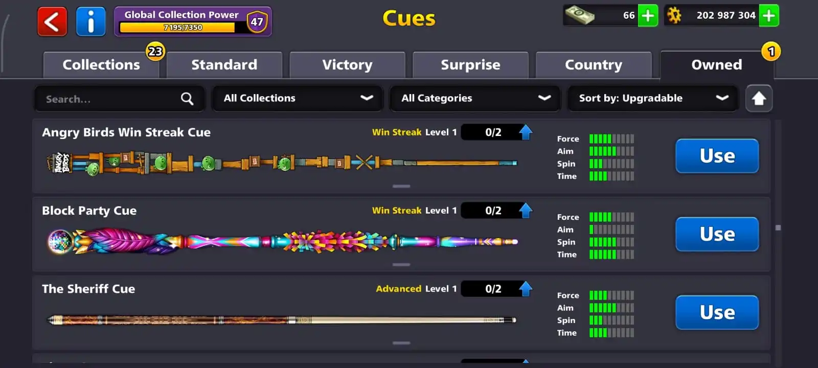Android🔥level 68🔥coins 202M🔥cue legendary 2🔥full access account🔥