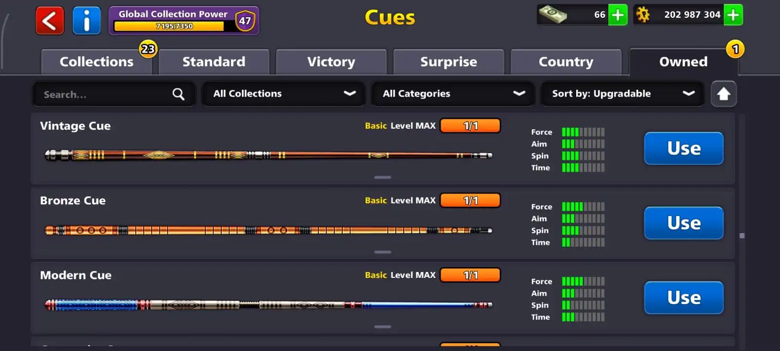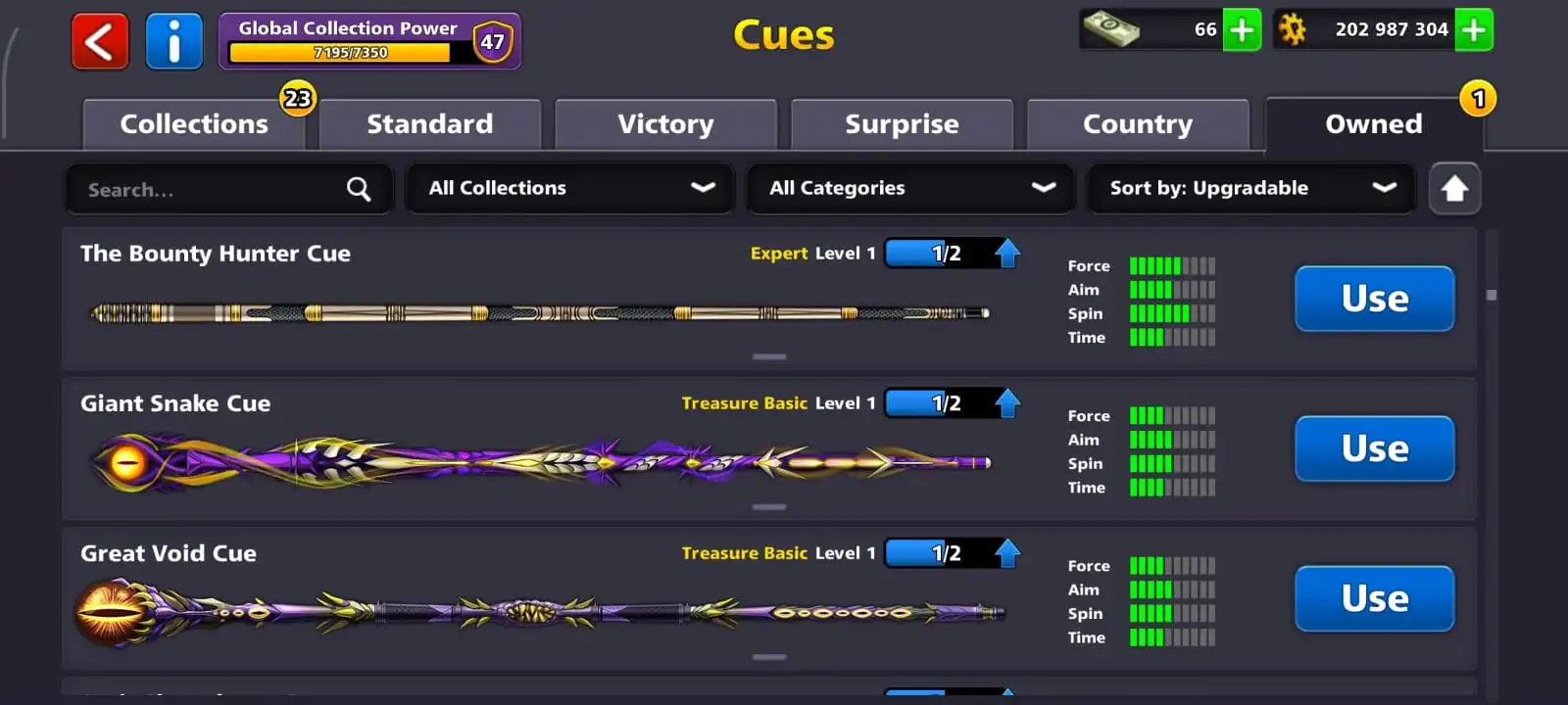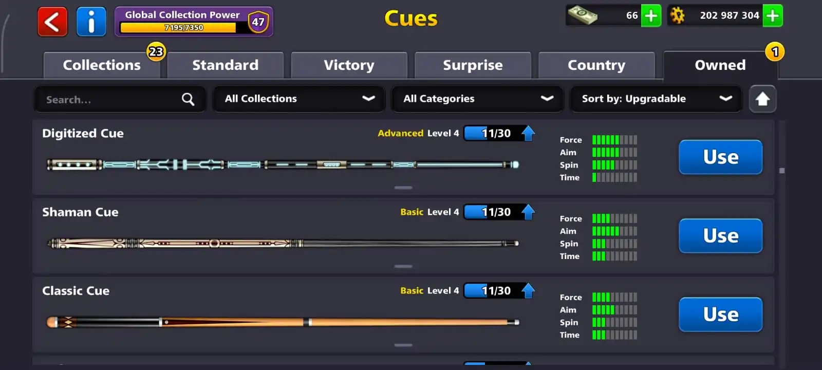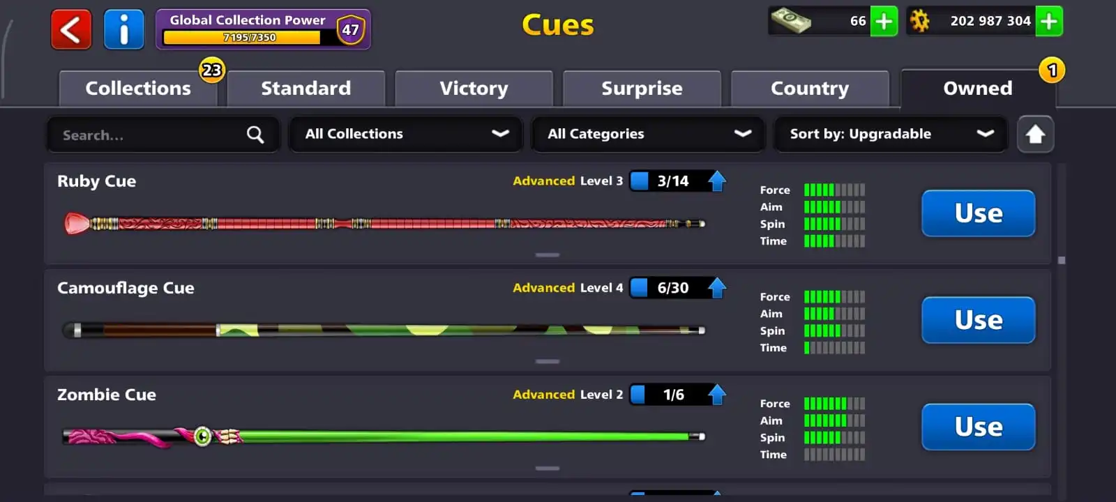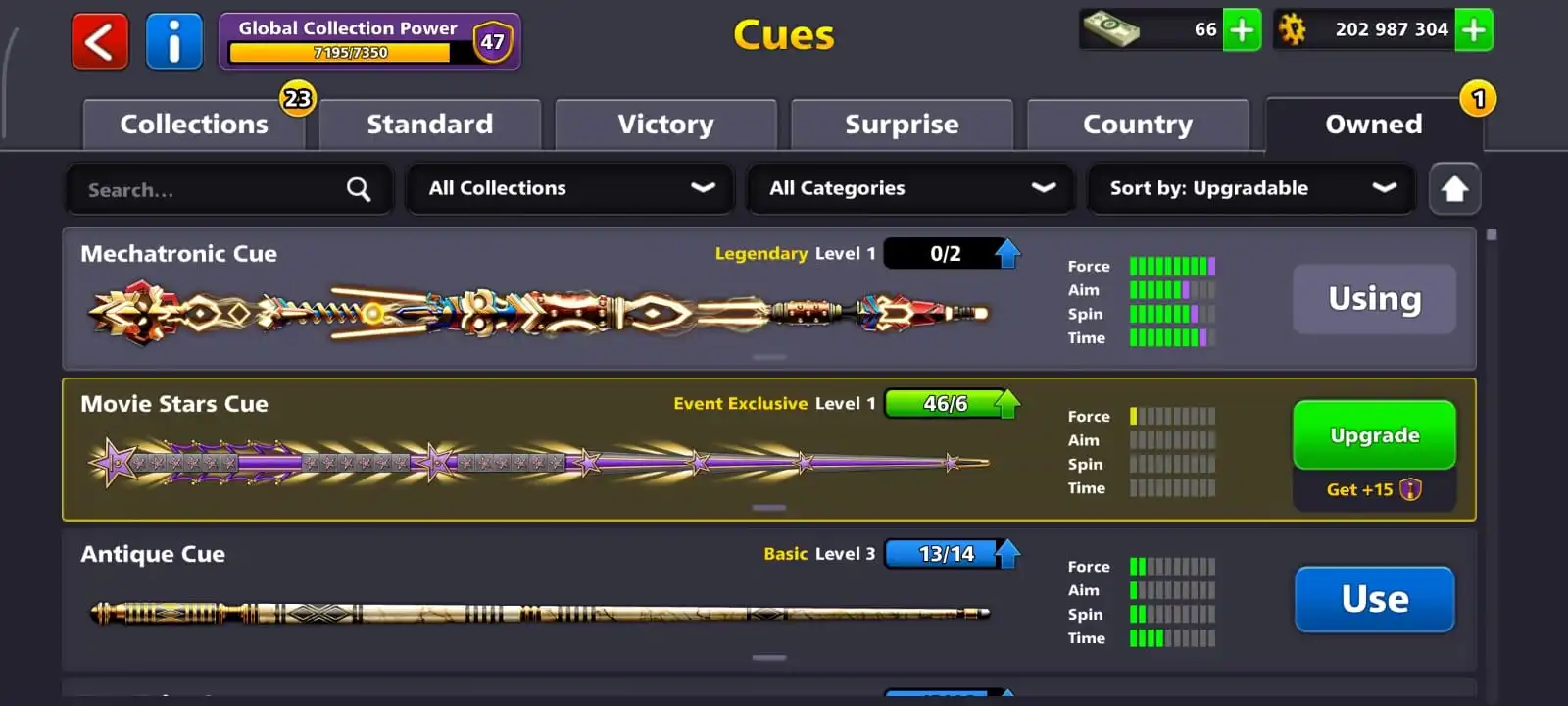 Android🔥level 68🔥coins 202M🔥cue legendary 2🔥full access account🔥