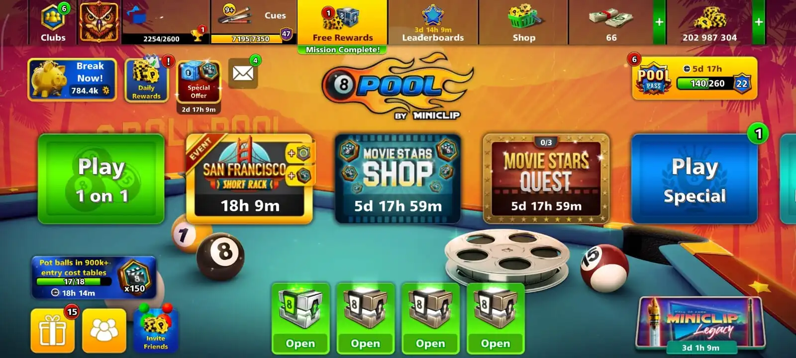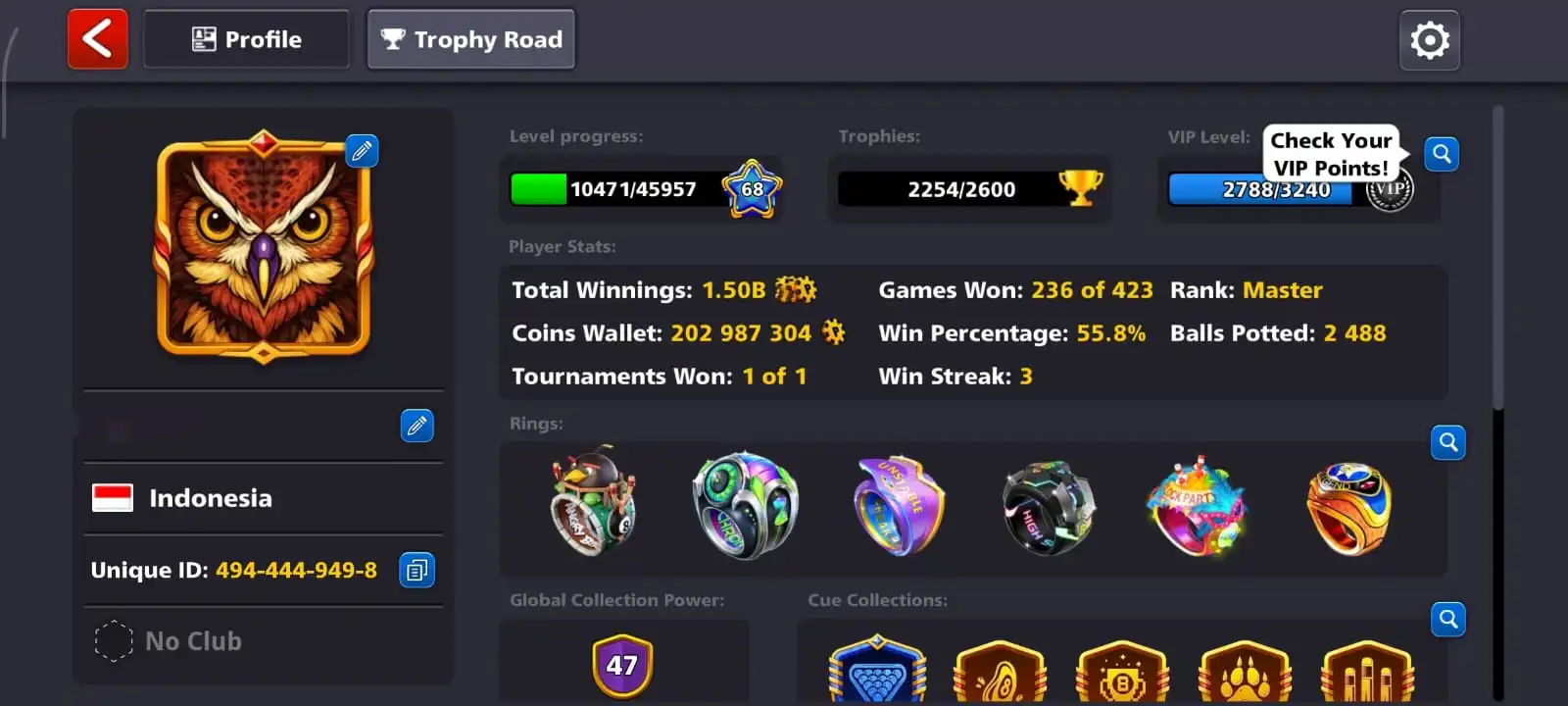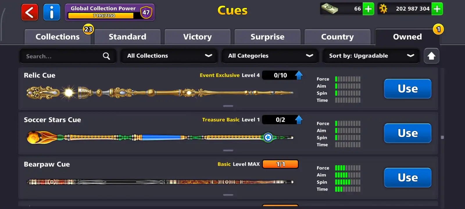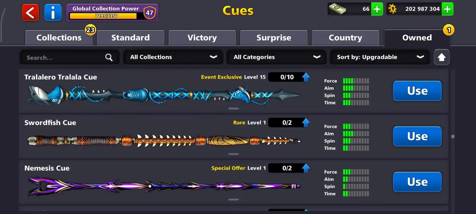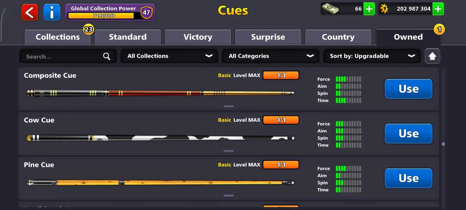 Android🔥level 68🔥coins 202M🔥cue legendary 2🔥full access account🔥