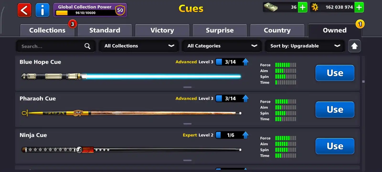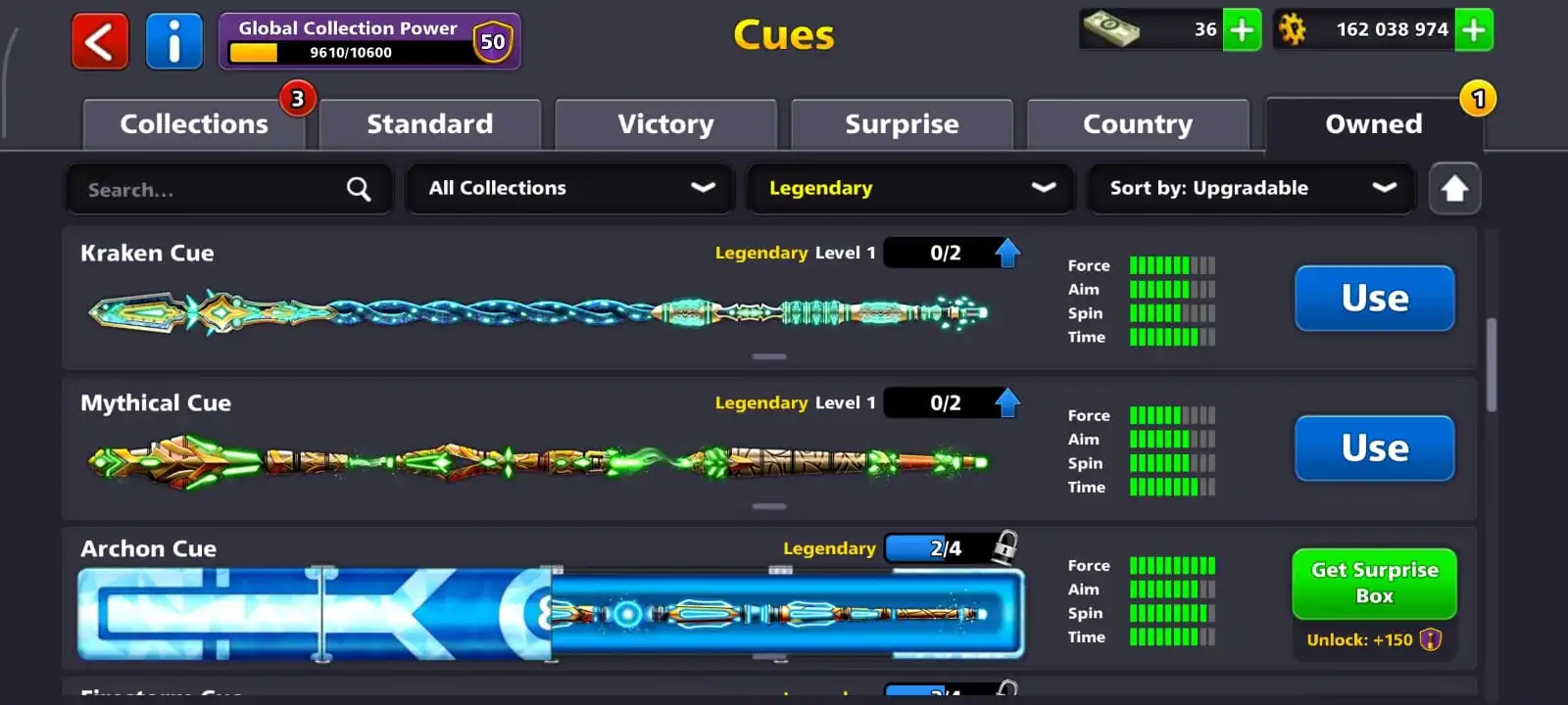 cheapest🔥level 94🔥coins 162M🔥cues legendary 5🔥full access accounr🔥