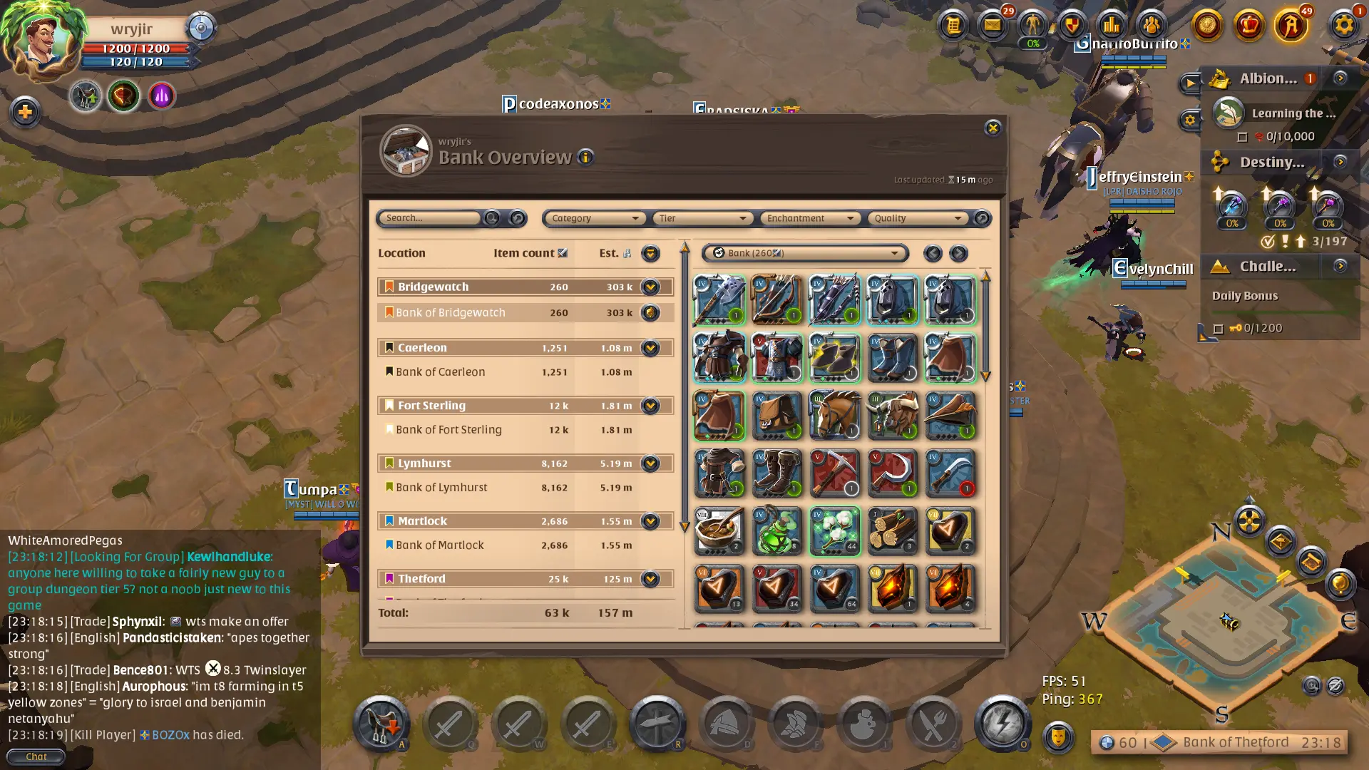 ✅ EU Server ✅ Total fame +433 ✅ Fame credit +400k ✅ Learning points +1500 ✅ almost Tier8 Hide✅ almost Tier8 ore✅ Tier8 Sickle ✅ 200m Silver estimated value