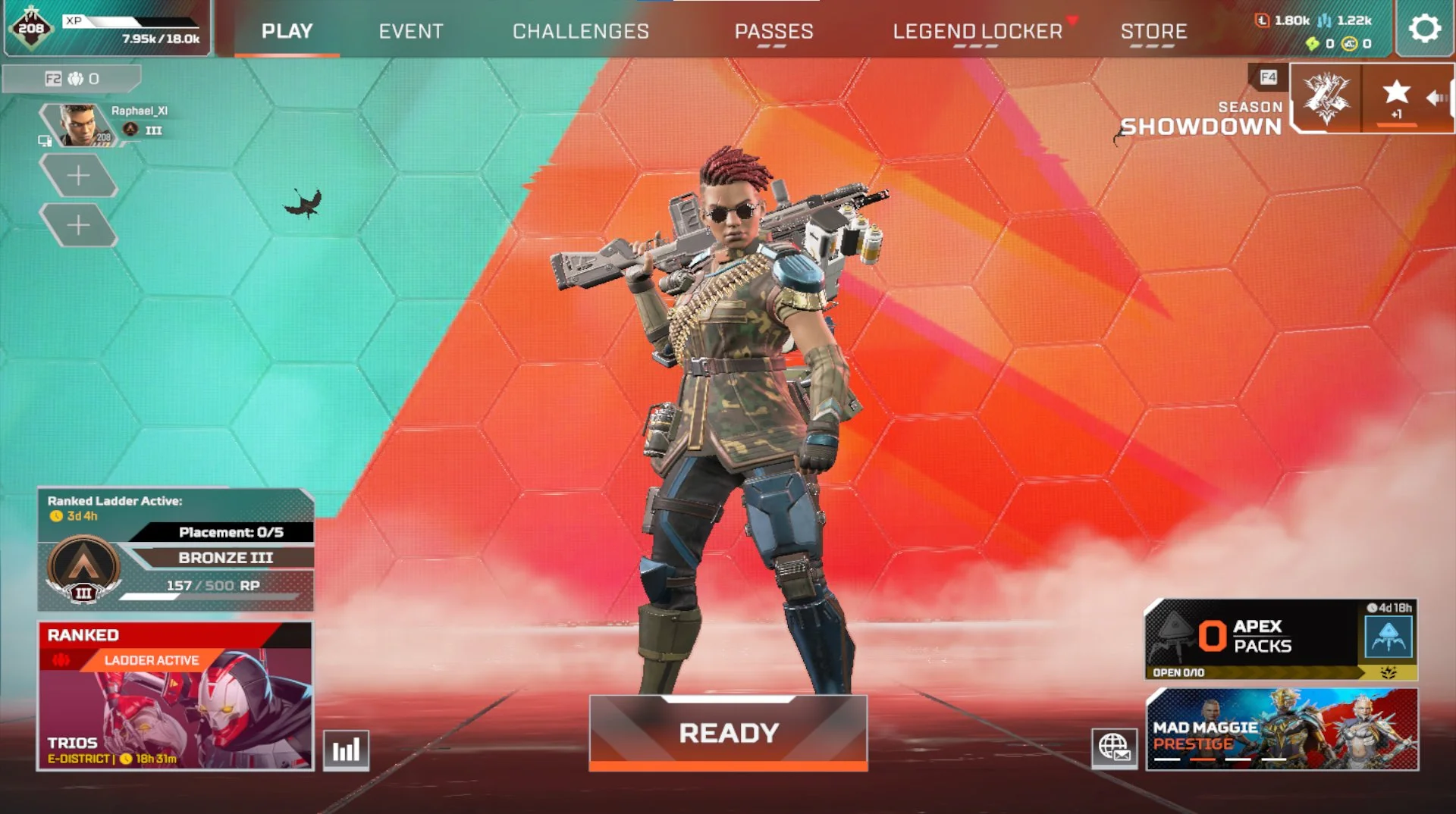 AP522 208 LVL, 70 Legendary Items, 1 Exotic, Octane Arachnoid Rush Skin, Bronze Rank