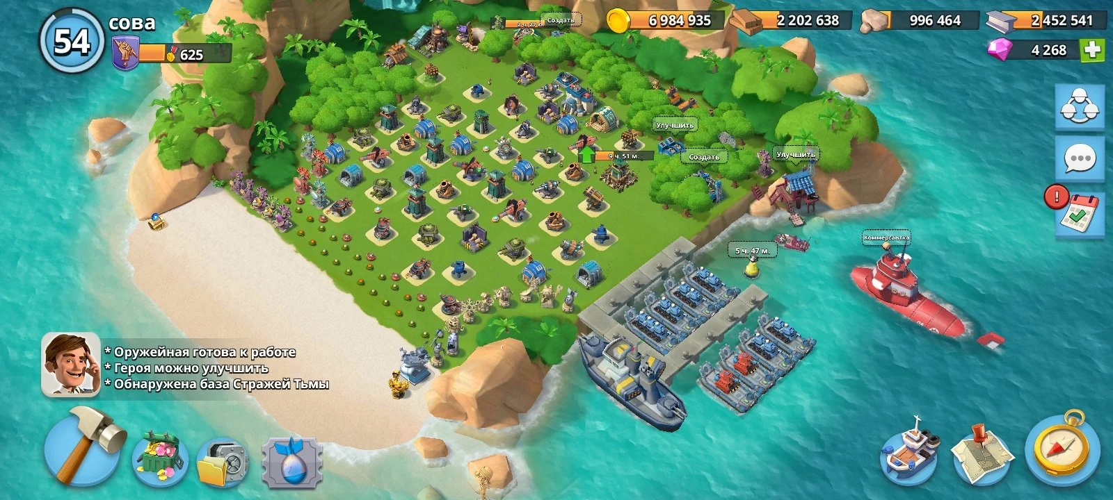 Broom It to Cart Boom Beach ⸱ Level 54, HQ 21, Gunboats 21, 4268 Gems(#A40204657f)